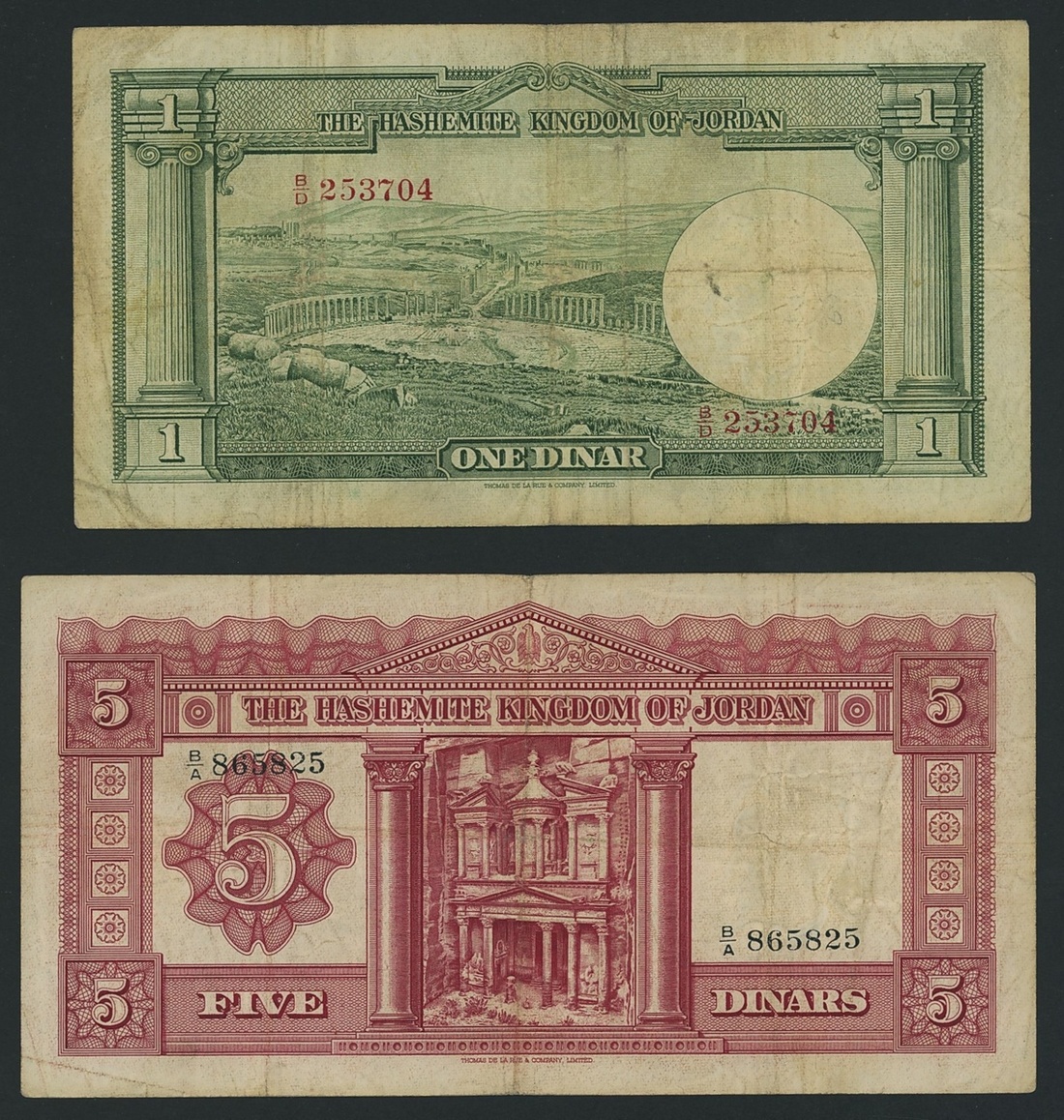 (x) The Hashemite Kingdom of Jordan, [4 notes] 1, 5 & 10 Dinars, 1952,