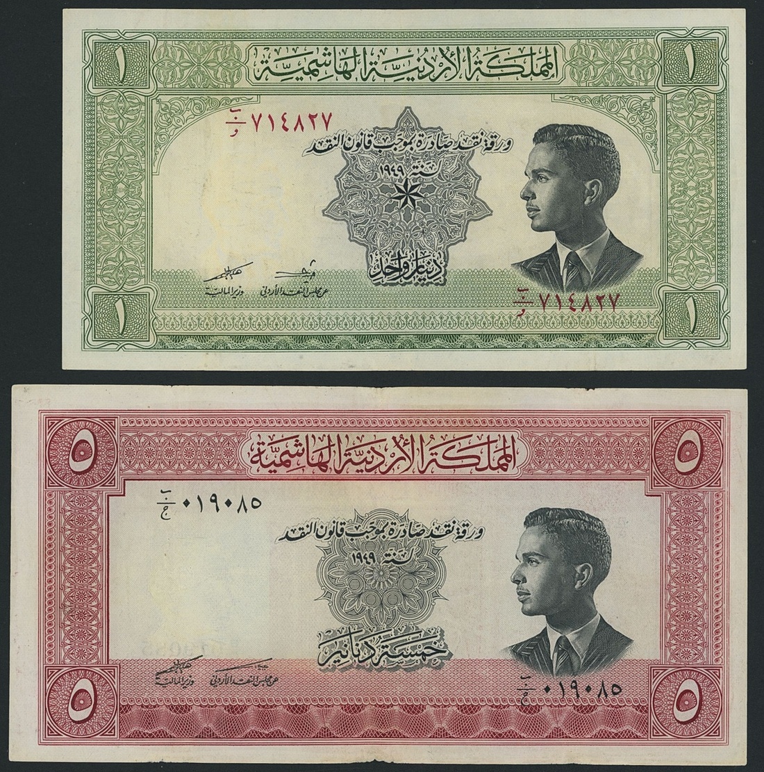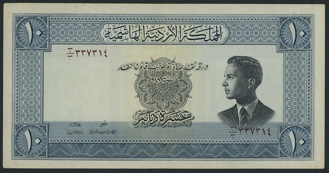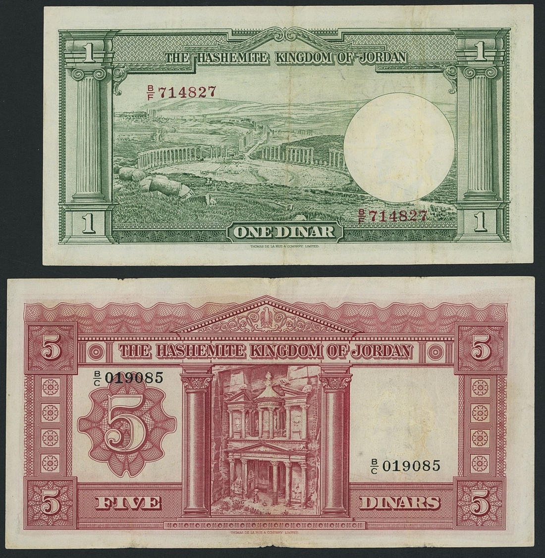 (x) [3 notes] Currency Board, Hashemite Kingdom of Jordan, 1, 5 & 10 Dinars, 1949,
