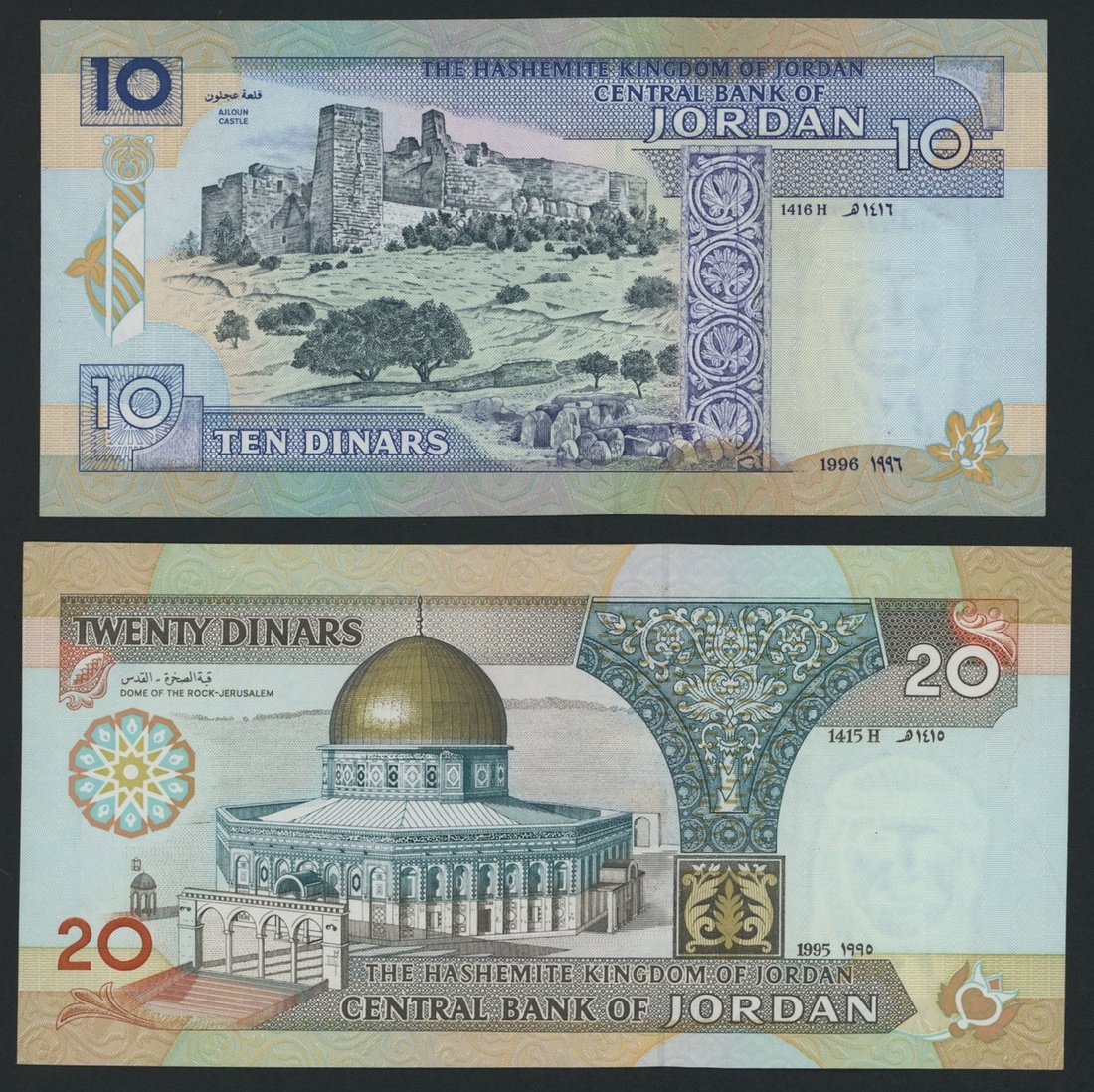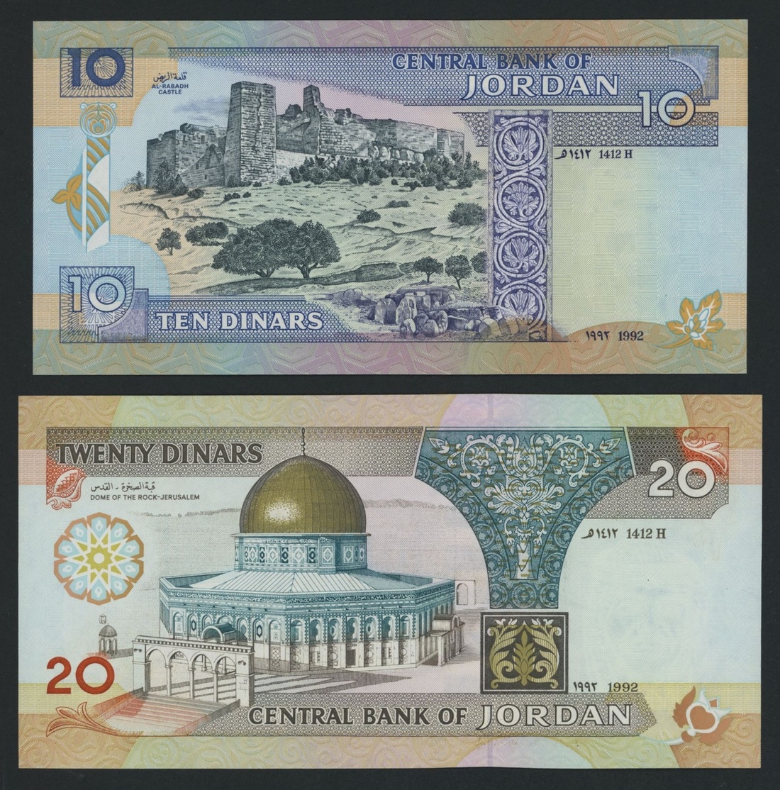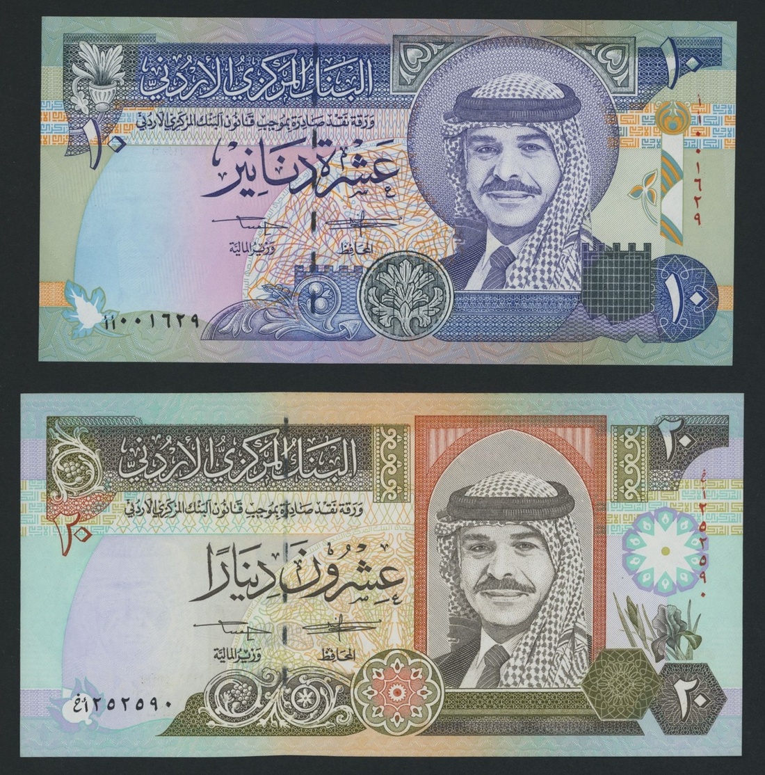 (x) Central Bank of Jordan, [10 notes] 1/2, 1, 5, 10 & 20 Dinars, 1992-2002, several low serial numbers,