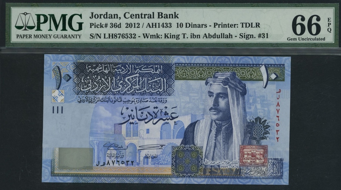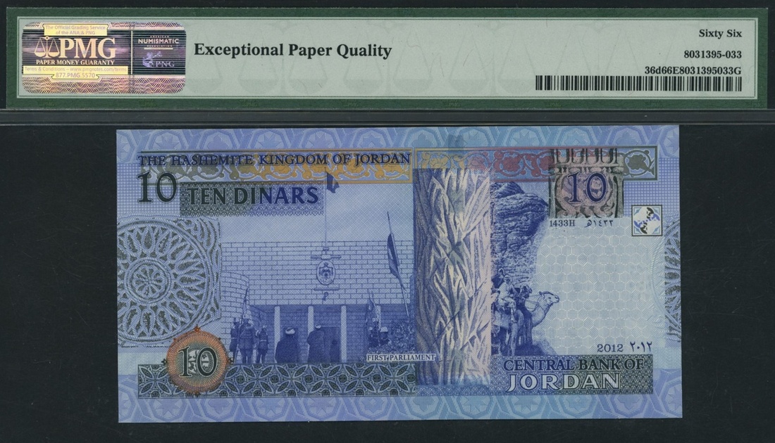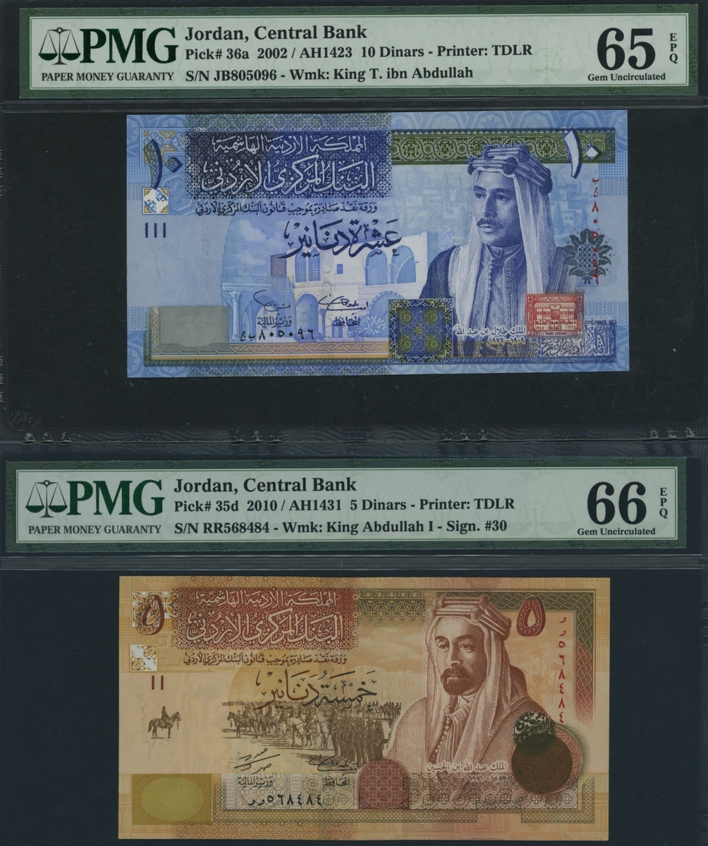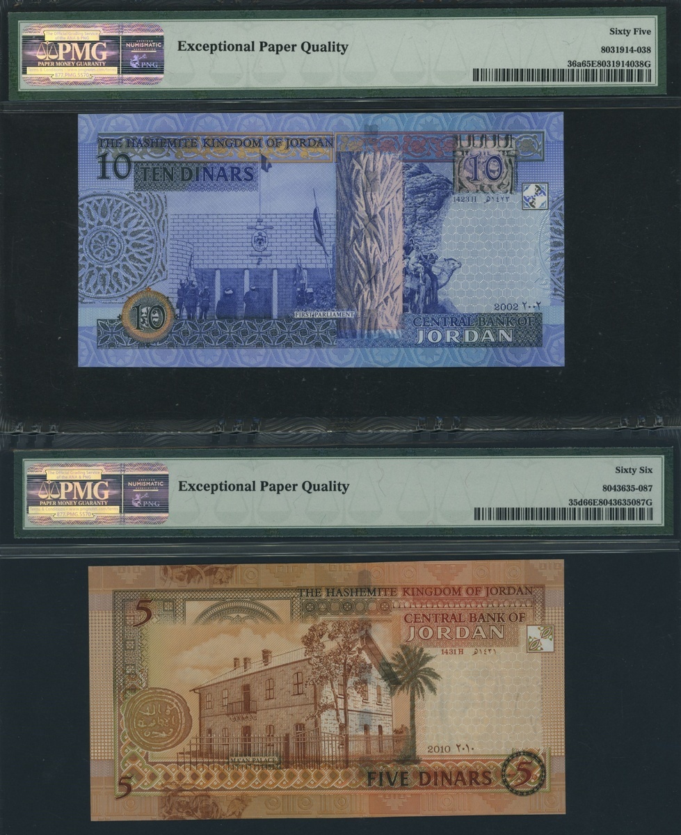 (x) Central Bank of Jordan, [3 notes], 5, 10 Dinars, 2002-2012,