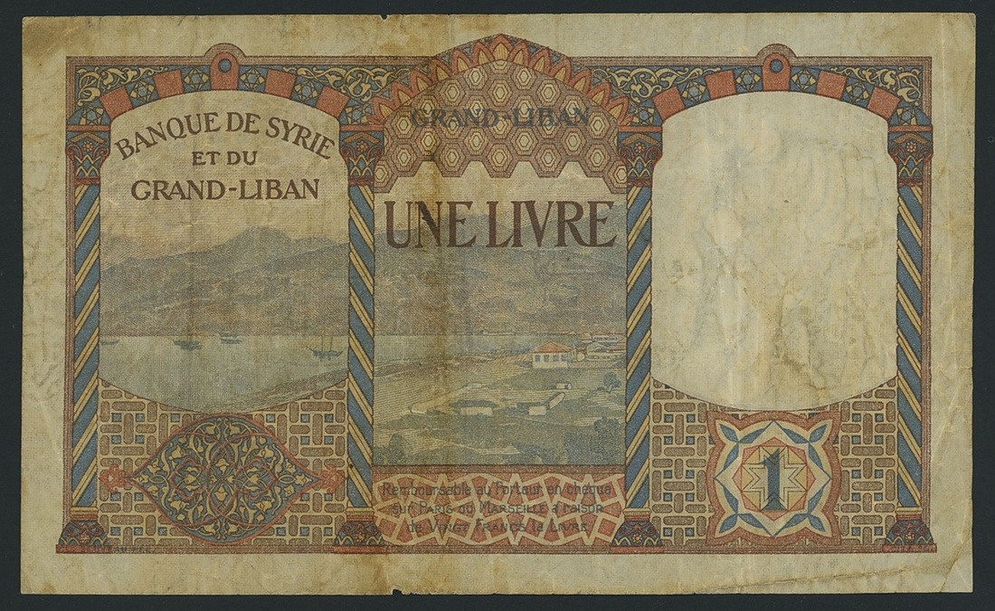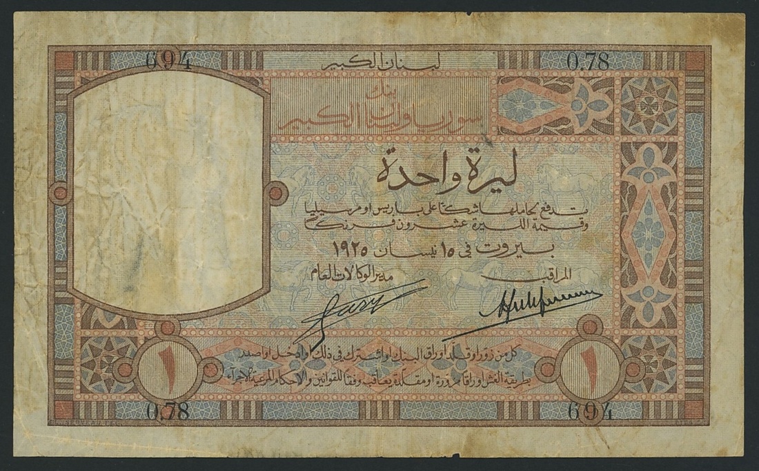 Banque de Syrie et du Grand-Liban, 1 Livre, 1925, serial number O.78 694, (Pick 3, BNB 103), fine, edge tears