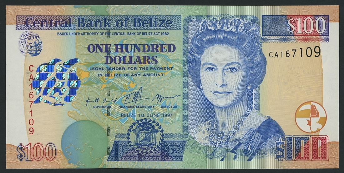 (x) Central Bank of Belize, $100, 1st June 1997, serial number CA 167109, (Pick 65), uncirculated