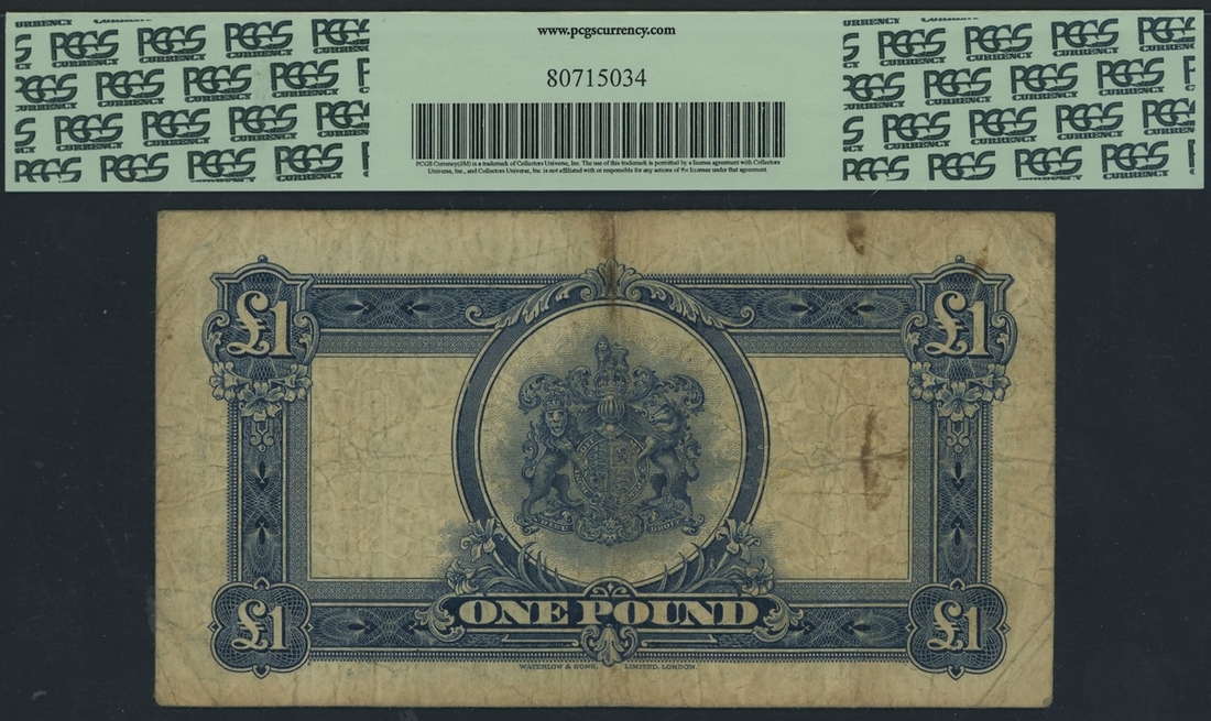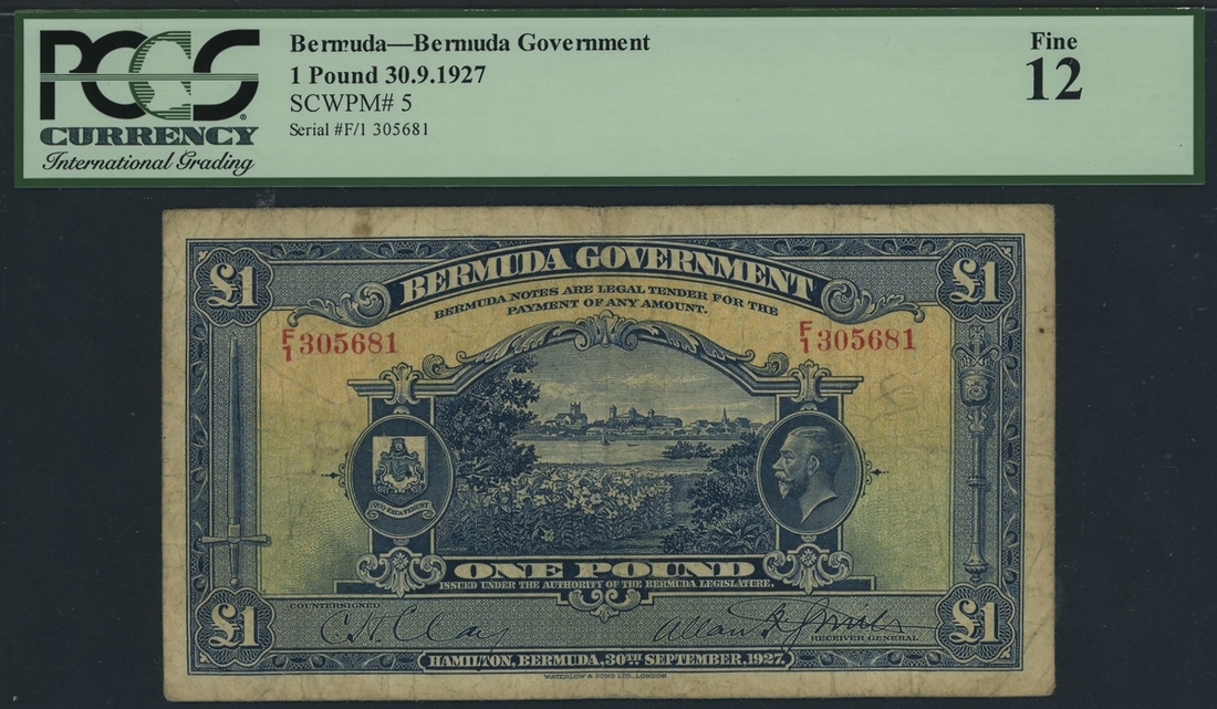 (x) Bermuda Government, £1, 30th September 1927, serial number F/1 305681, (Pick 5), in PCGS holder 12 Fine