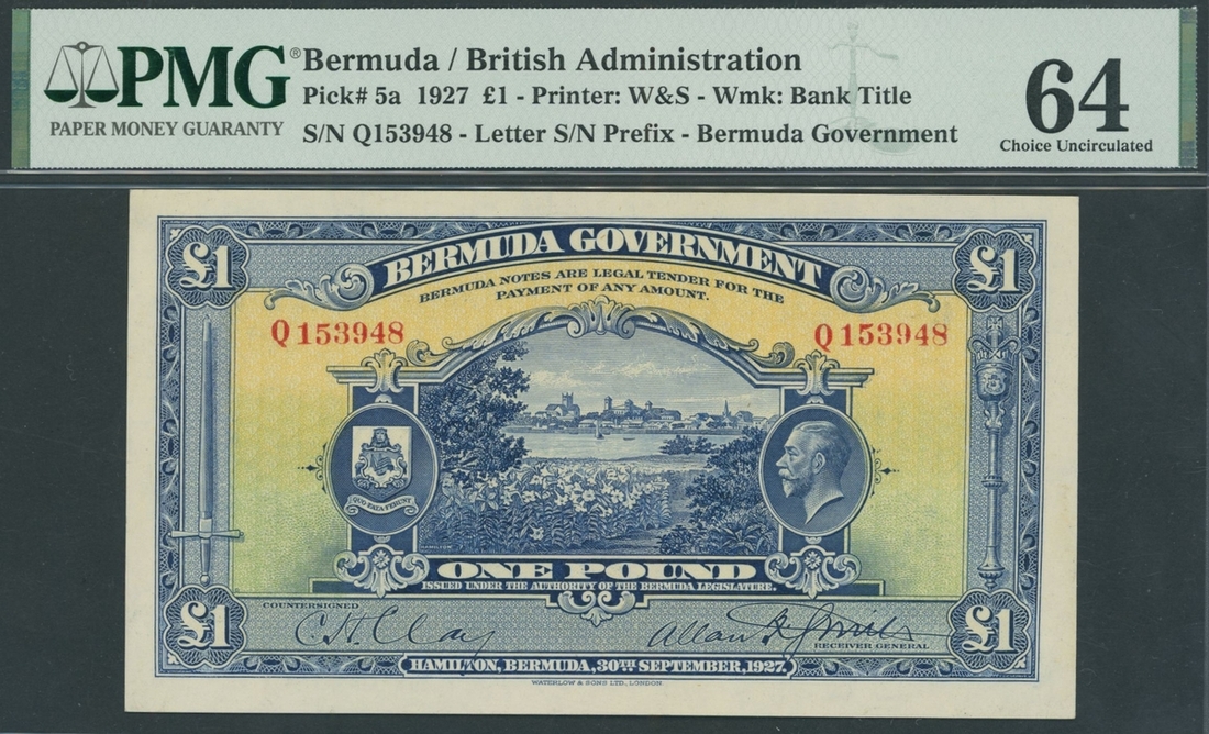 (x) Bermuda Government, *TOP POP* £1, Hamilton, 30th September 1927, serial number Q153948,