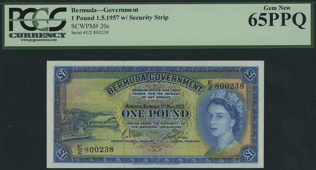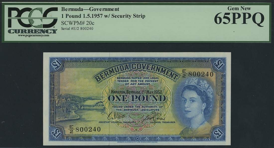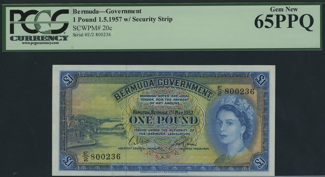 (x) Bermuda Government, [5 notes] £1, 1st May 1957, consecutive serial numbers E/2 800236-240, (Pick 20c), all in PCGS holder 65 PPQ Gem New (5 notes)