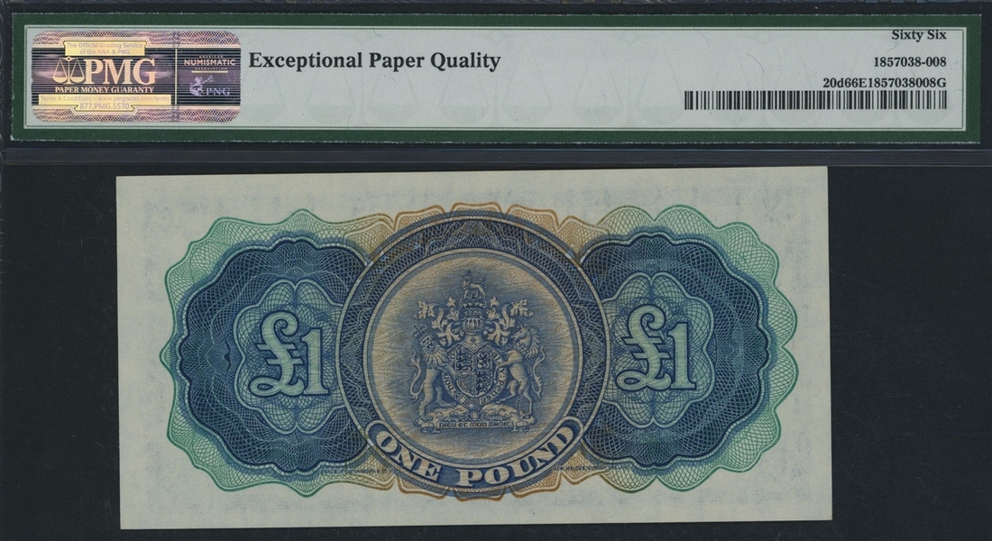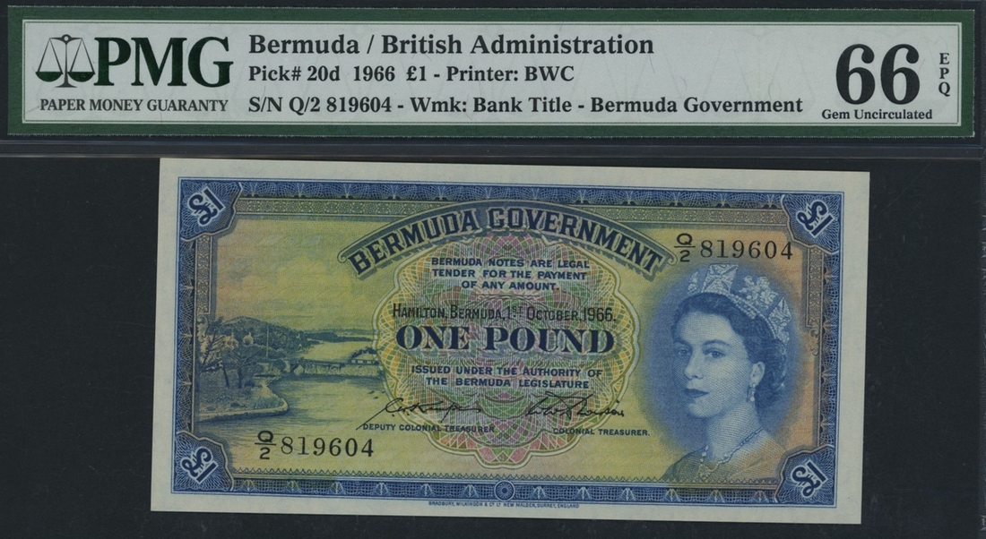 (x) Bermuda Government, £1, 1st October 1966, serial number Q/2 819604, (Pick 20d), in PMG holder 66 EPQ Gem Uncirculated
