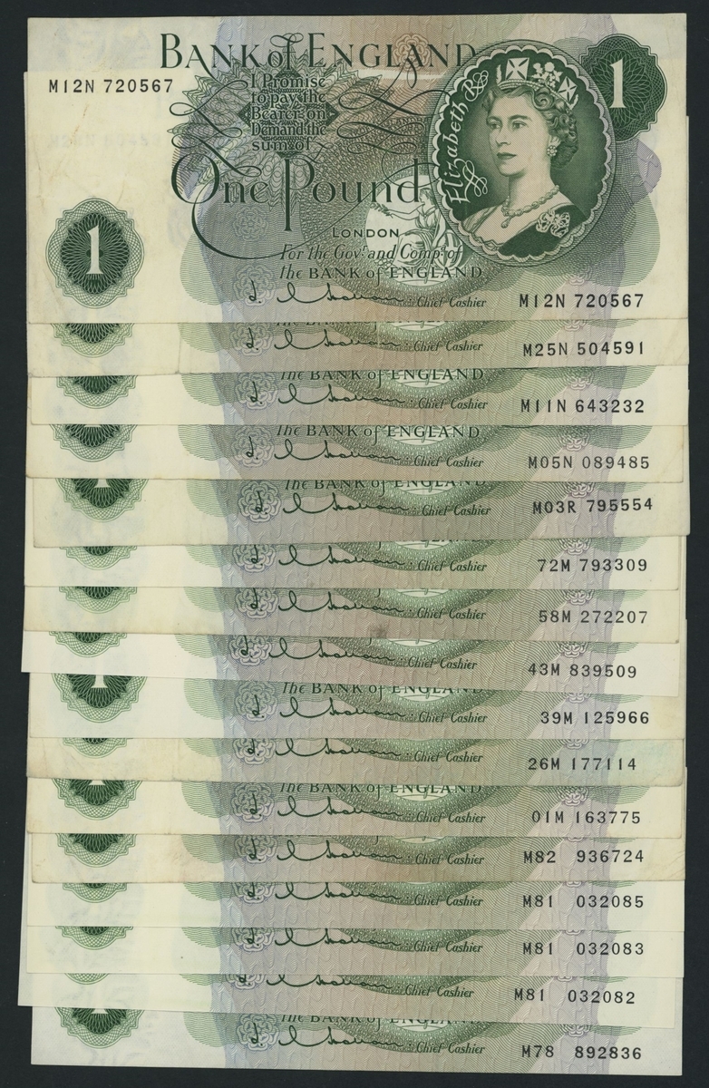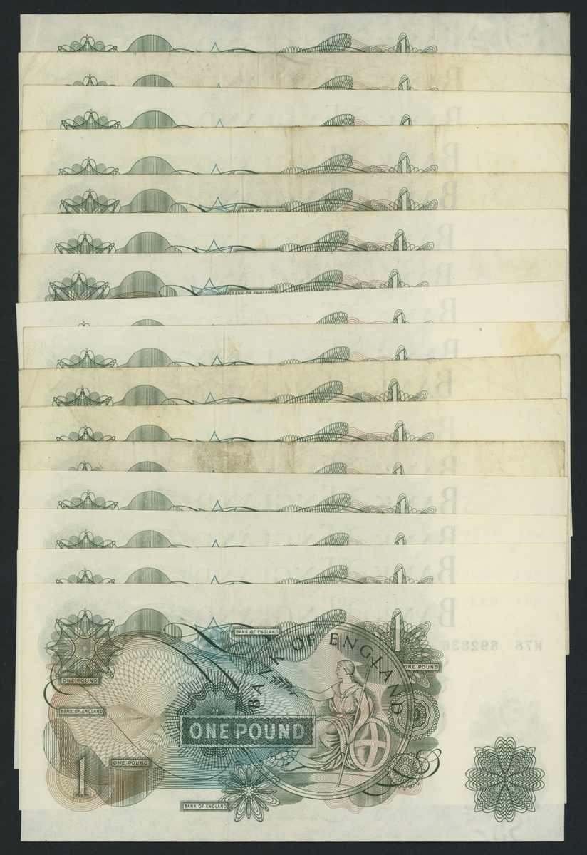 Bank of England, J. Q. Hollom, [16 notes] replacement £1, ND (1963), including first run prefix and pair of consecutive serial numbers