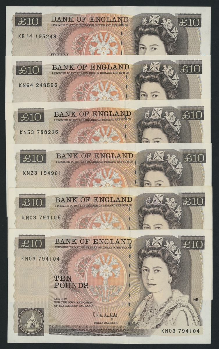 Bank of England, G. E. A. Kentfield, [6 notes] £10, ND (1991), including pair of consecutive serial numbers,