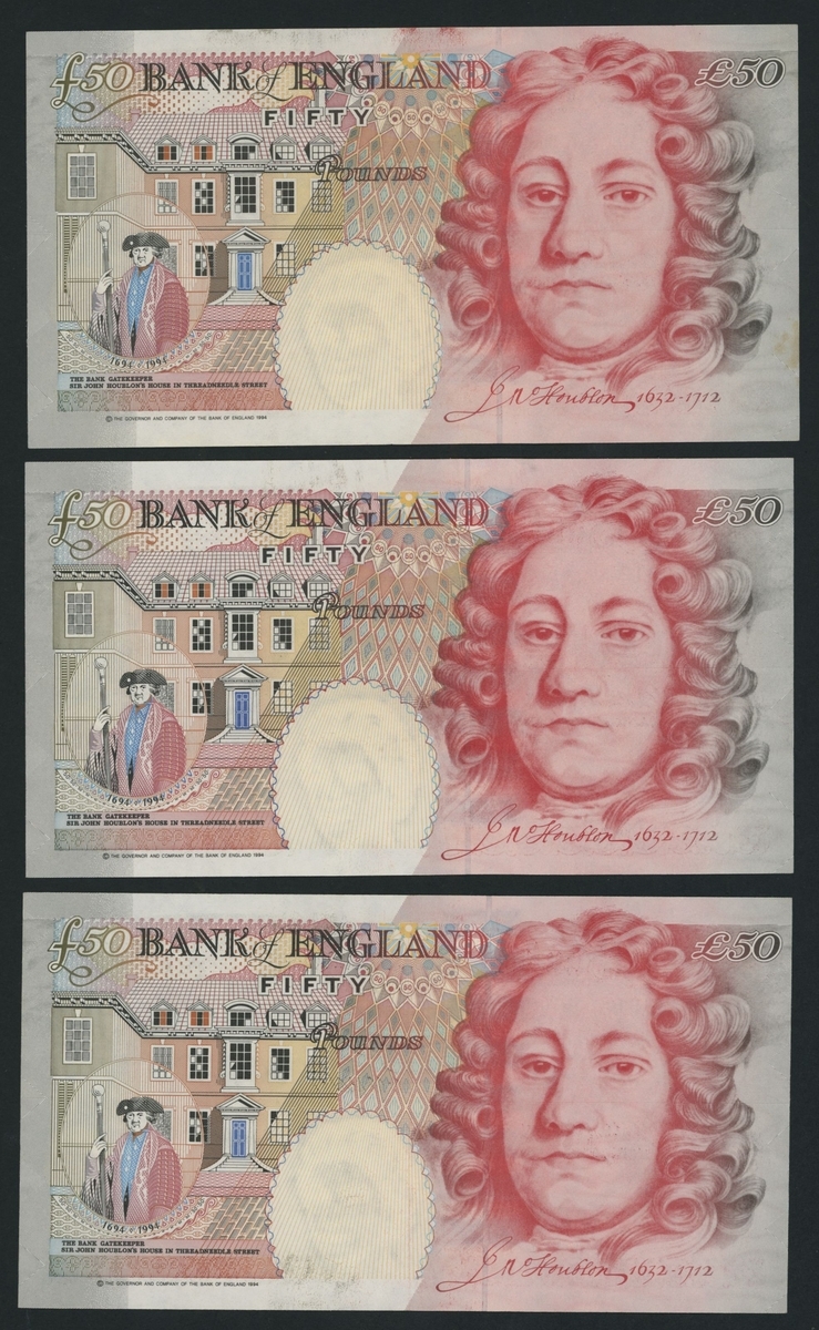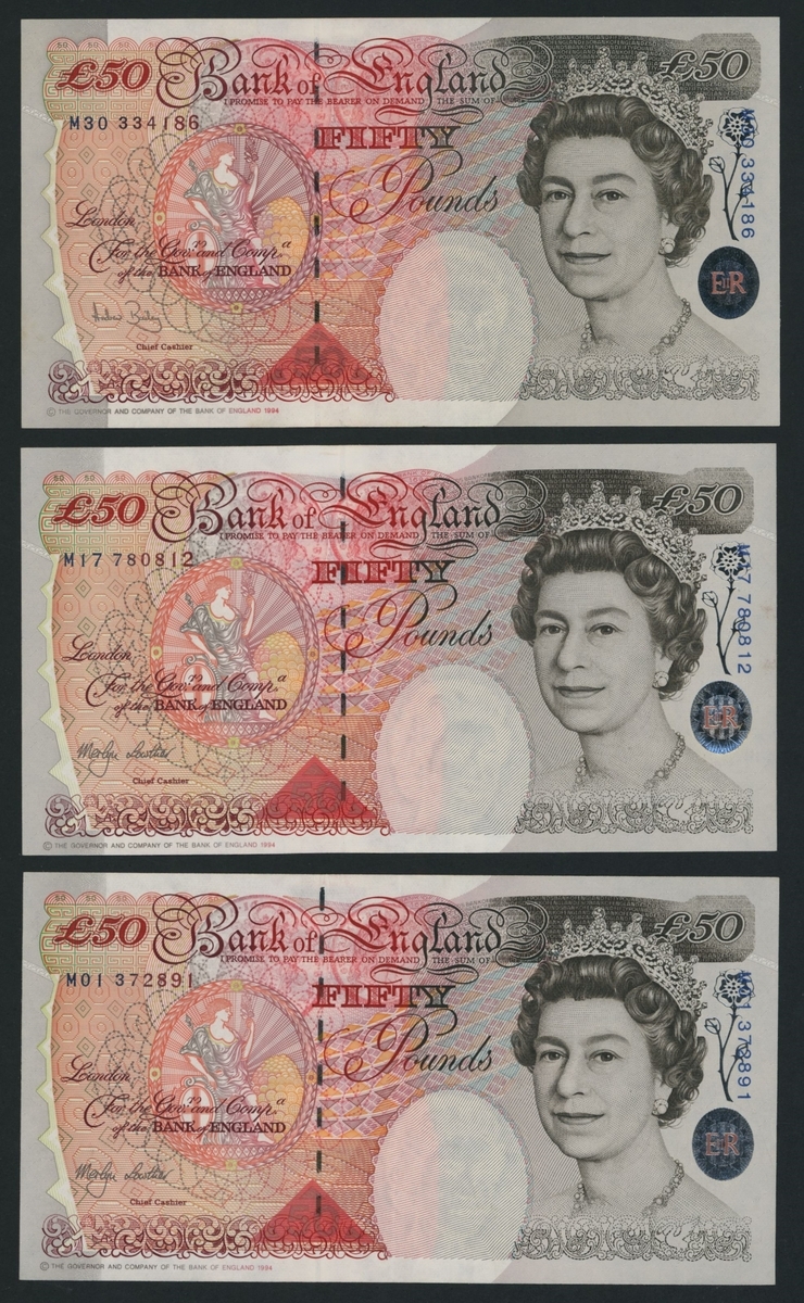 Bank of England, M. Lowther, [3 notes] £50, 1994, serial numbers M01 372891, M17 780812 and M30 334186