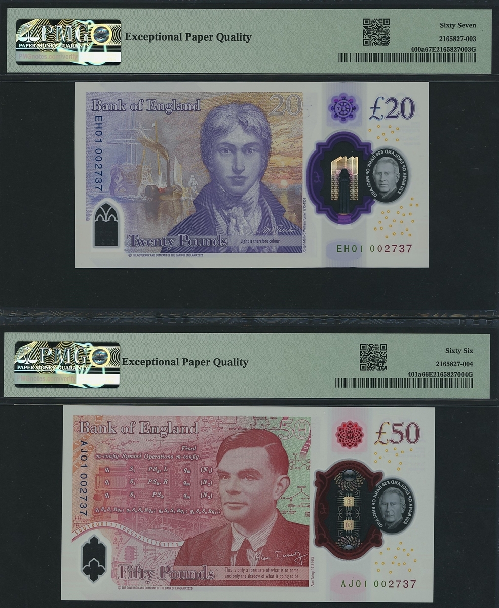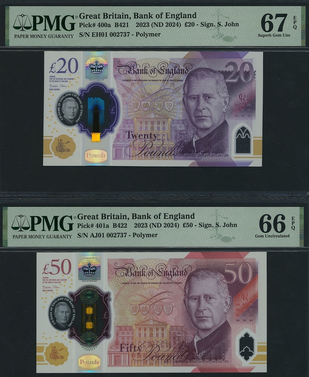 (EPM B419, 420, 421, 422), in PMG holders (£5 & £20 notes) 67 EPQ Superb Gem Uncirculated, (£10 & £50 notes) 66 EPQ Gem Uncirculated (4 notes)