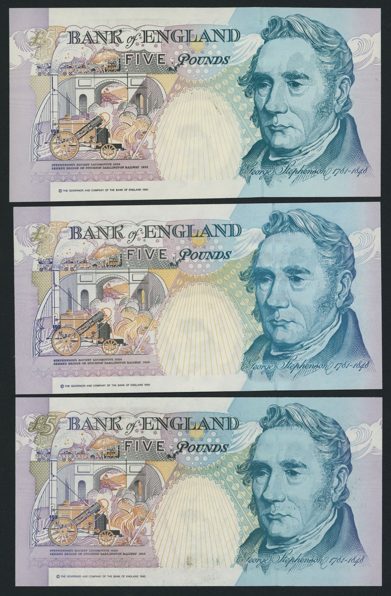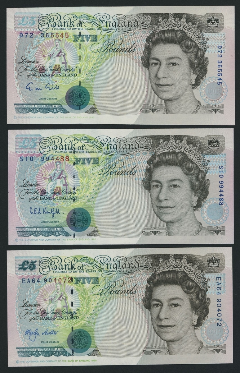 £5, ND (1990), serial number D72 365545,