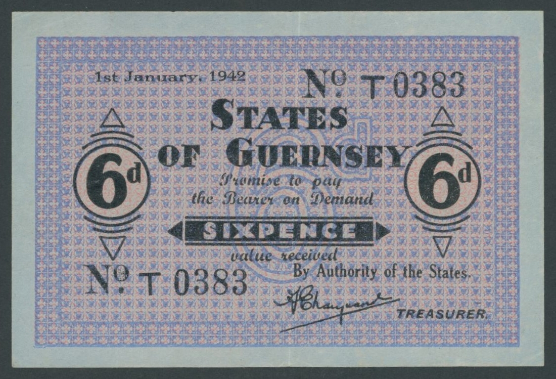 (x) States of Guernsey, 6 Pence, 1st January 1942, serial number T0383, (Pick 24, BNB 134), extremely fine