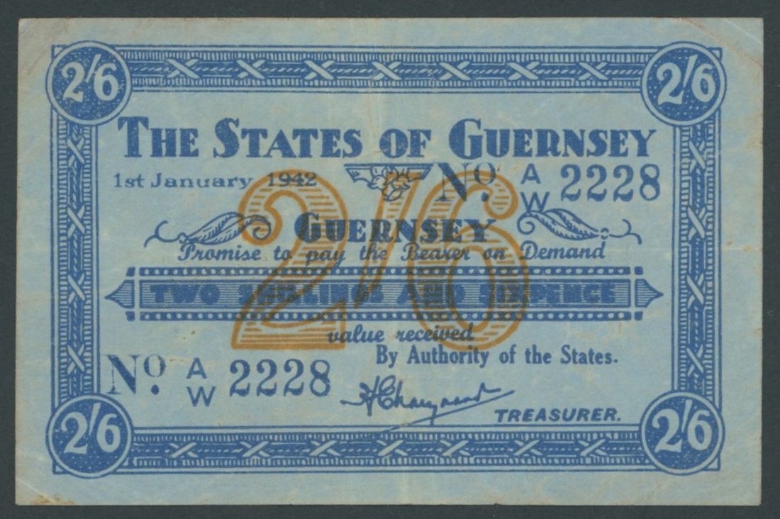 (x) States of Guernsey, 2 Shillings and 6 Pence, 1st January 1942, serial number A/W 2228, (Pick 25A, BNB 135), good very fine