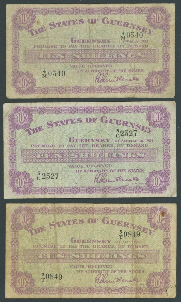 (x) States of Guernsey, [3 notes] 10 Shillings, 1953-5,