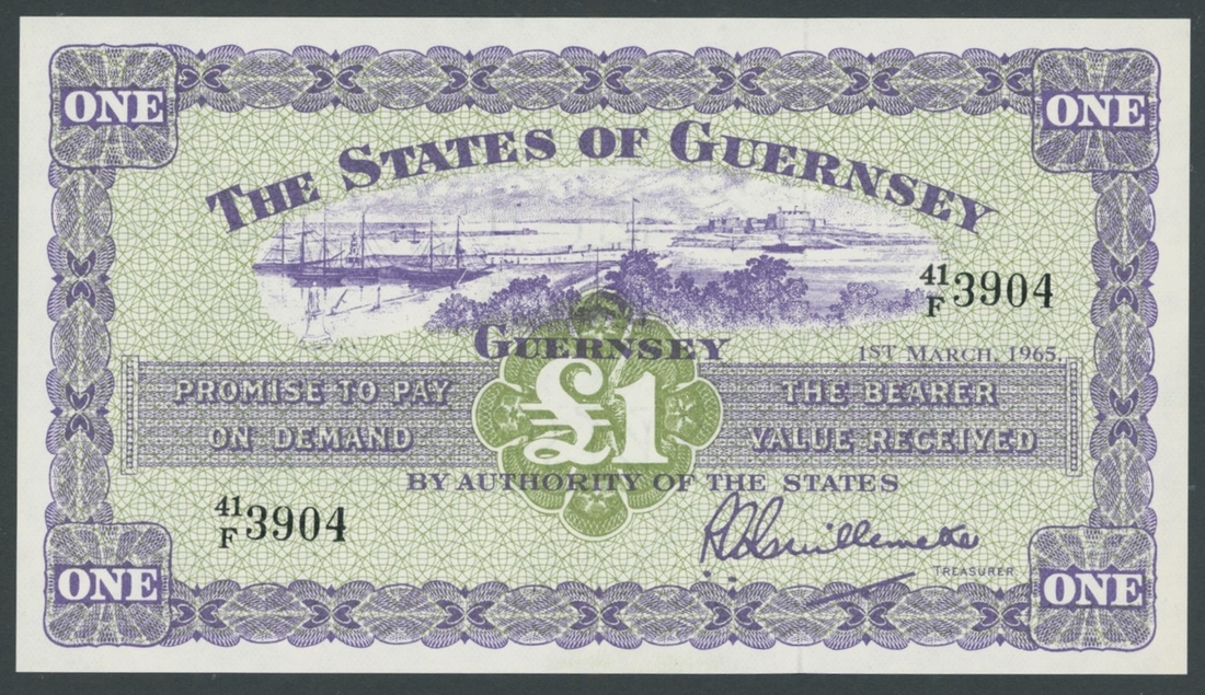 (x) States of Guernsey, £1, 1st March 1965, serial number 41/F 3904, (Pick 43b, BNB 148t), uncirculated, one light crease