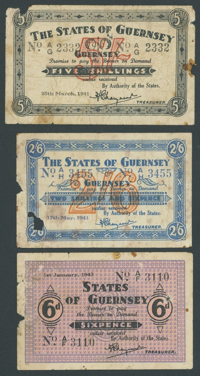 (x) Set of States of Guernsey, [4 notes] 5 Shillings, 25th March 1941, serial number A/G 2332,