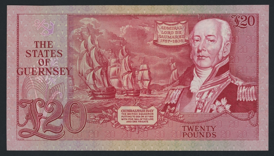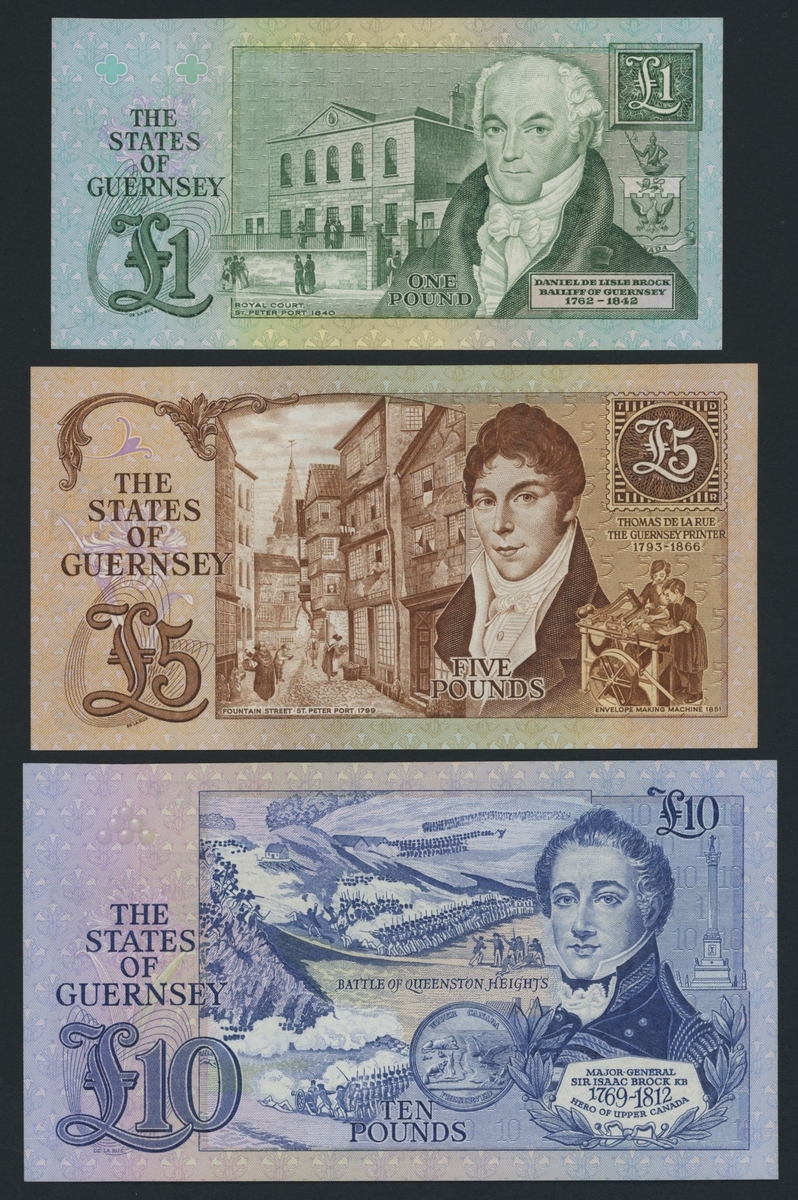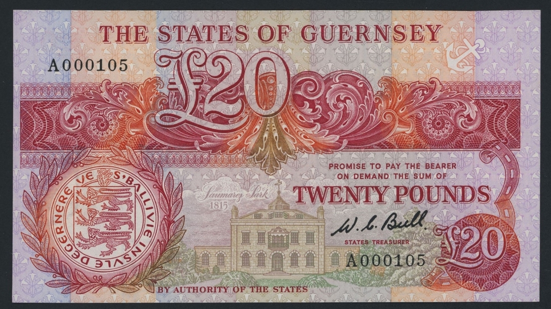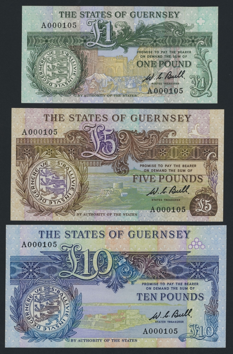 (x) States of Guernsey, [4 notes] a complete matching low serial number set of £1, £5, £10, £20, ND (1980-89), serial numbers A000105, (Pick 48a, 49a, 50a, 51a), uncirculated (4 notes)