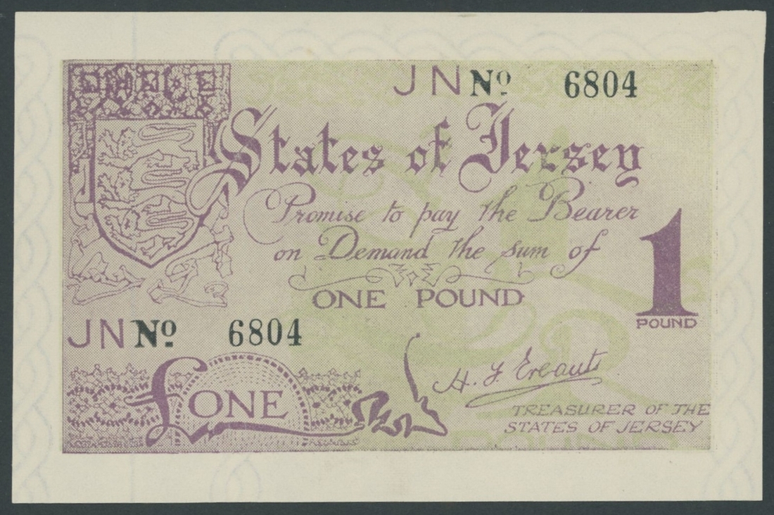 (x) States of Jersey, £1, 1941, serial number 6804, (Pick 6, BNB 106), about uncirculated, light handling creasing