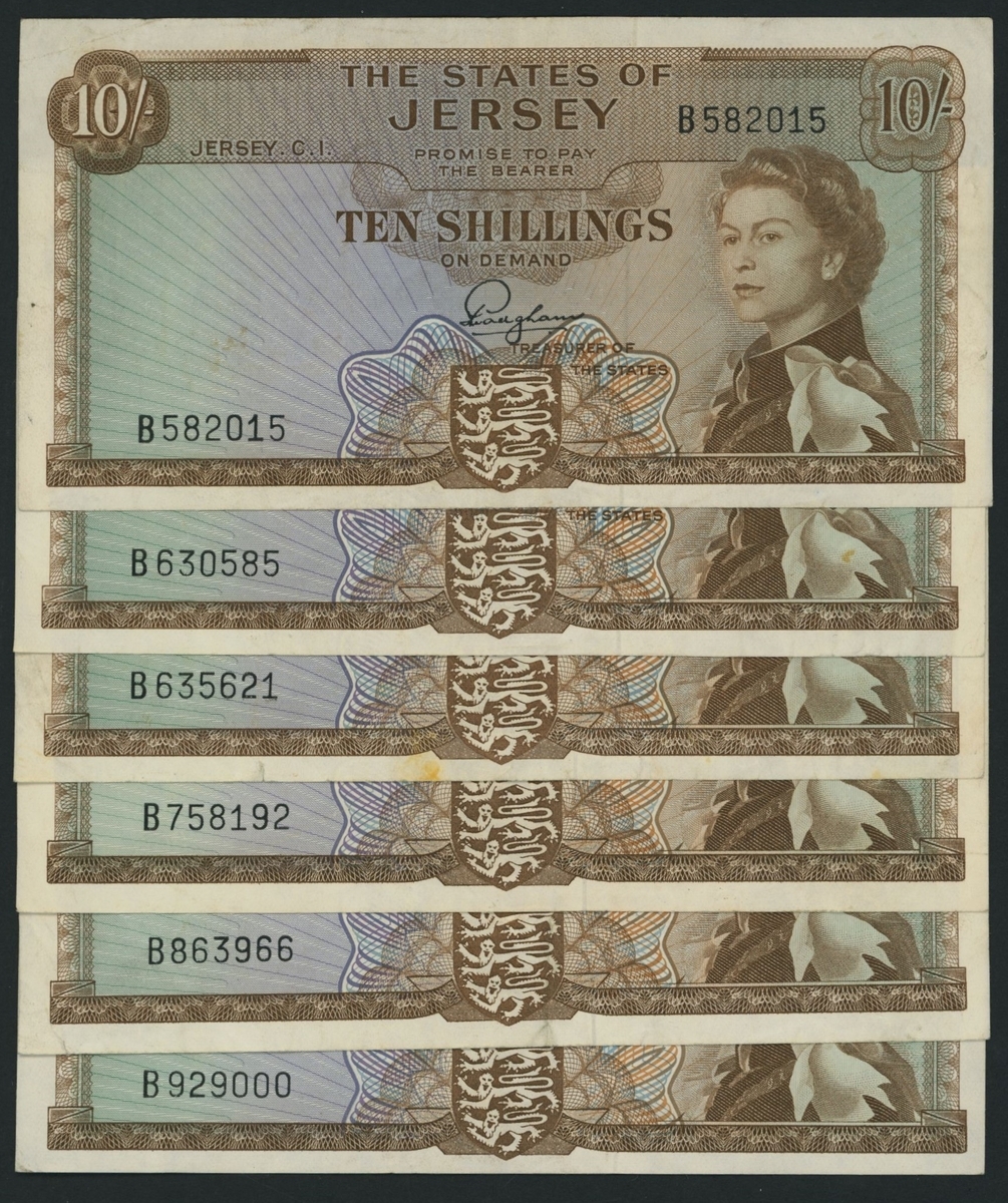 (x) States of Jersey, [6 notes] 10 Shillings, ND (1963), (Pick 7a), all fine to about very fine