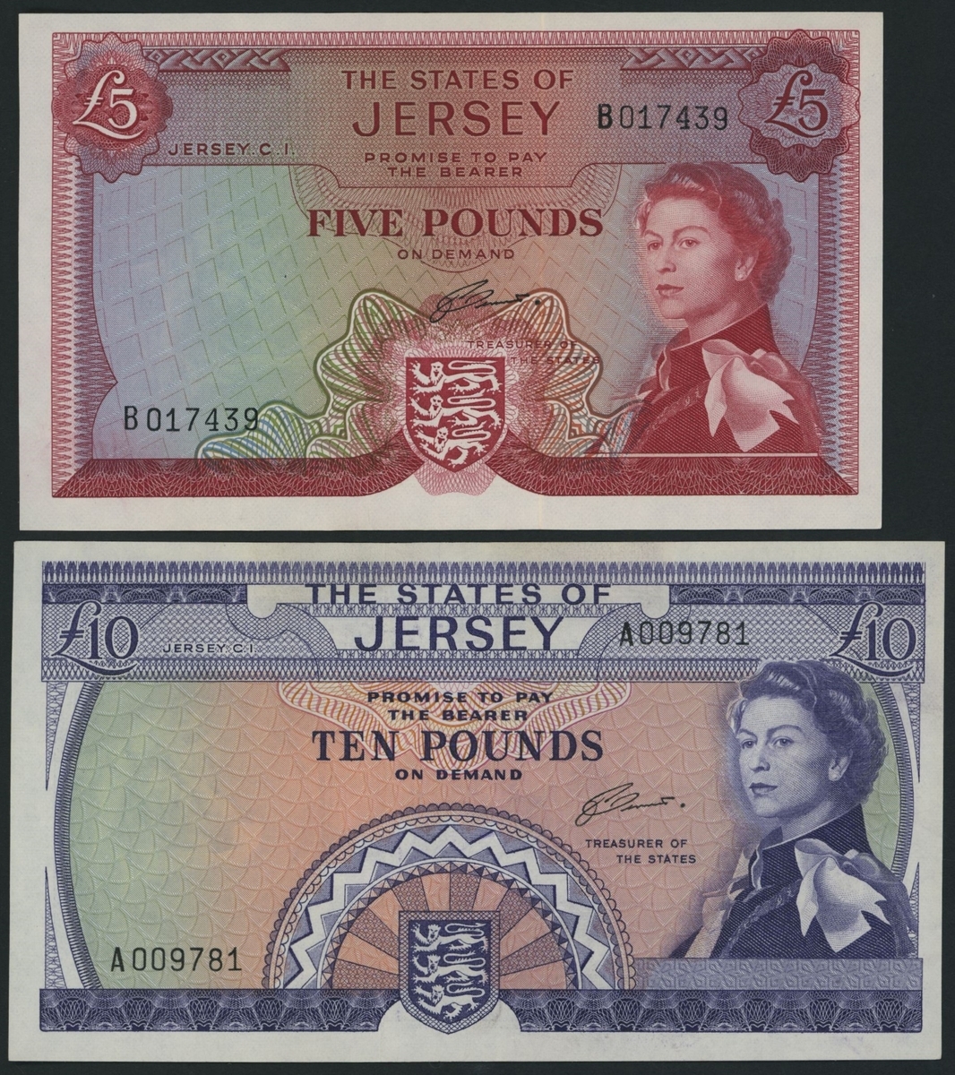 (x) States of Jersey, [2 notes] £5, £10, ND (1963-72), serial numbers B017439, A009781, (Pick 9b, 10a), good extremely fine to about uncirculated (2 notes)