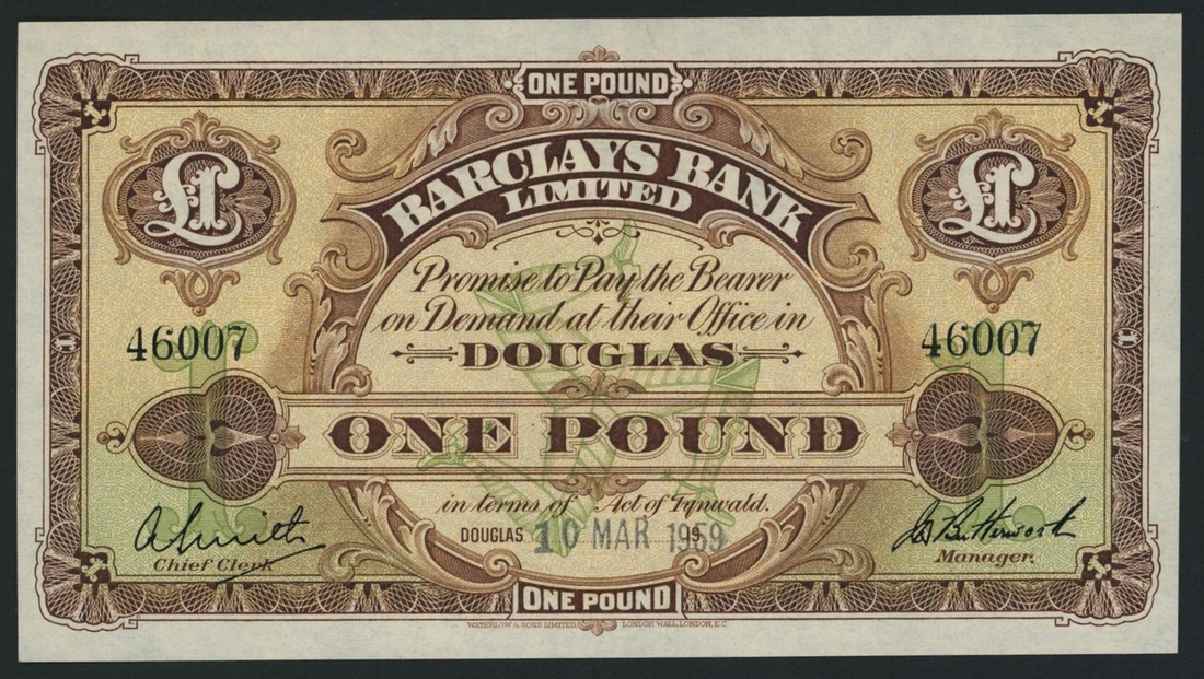 (x) Barclays Bank Limited, £1, Douglas, 10th March 1959, serial number 46007, (Pick 1c, IOMPM M347), about uncirculated, rare!