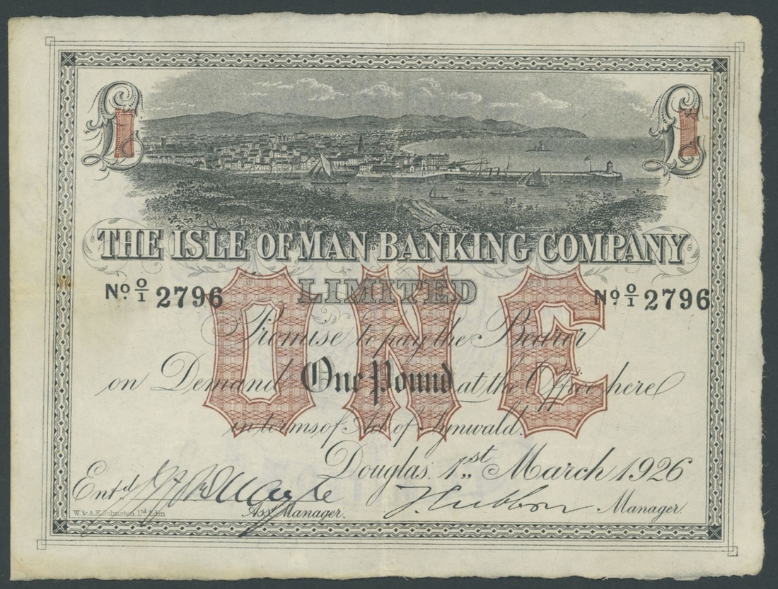 (x) Isle of Man Banking Company Limited, £1, Douglas, 1st March 1926, serial number O/1 2796, (Pick 2, IOMPM M274), extremely fine