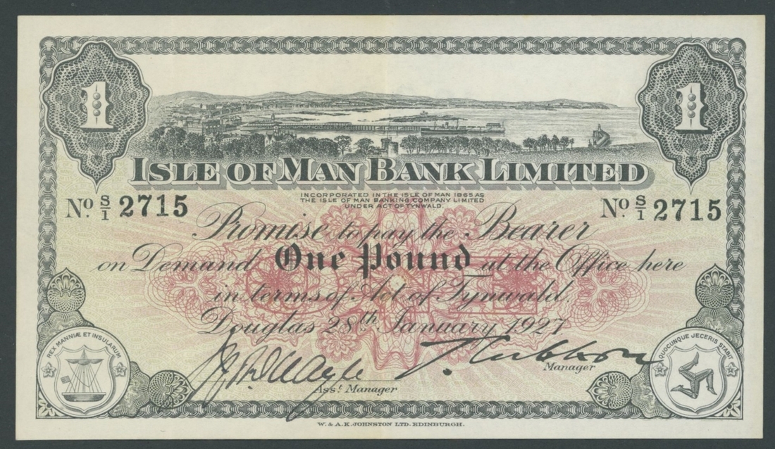(x) Isle of Man Bank Limited, £1, Douglas, 28th January 1927, serial number S/1 2715, (Pick 4, IOMPM 275), extremely fine