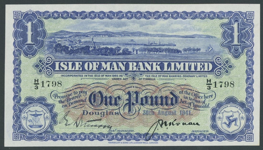 (x) Isle of Man Bank Limited, £1, Douglas, 30th August 1941, serial number H/3 1798, (Pick 6b, IOMPM M279), about uncirculated, some light handling creasing