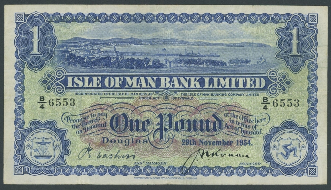 (x) Isle of Man Bank Limited, £1, Douglas, 29th November 1954, serial number B/4 6553, (Pick 6c, IOMPM M282), good very fine, pinhole