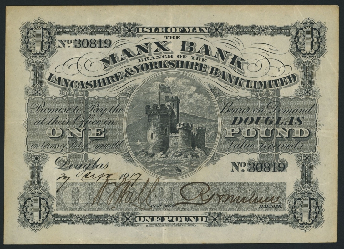 (x) Manx Bank Branch of the Lancashire & Yorkshire Bank Limited, £1, Douglas, 7th September 1917, serial number 30819,