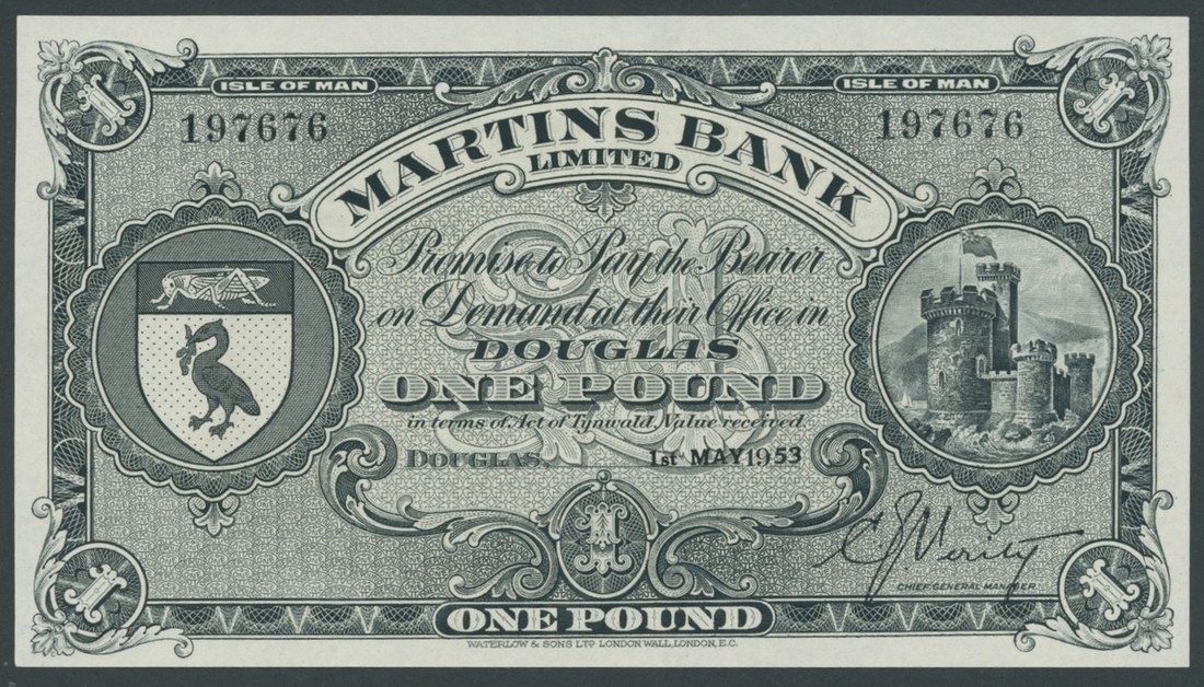 (x) Martins Bank Limited, £1, Douglas, 1st May 1953, serial number 197676, (Pick 19b, IOMPM M326), two light handling creases, otherwise uncirculated