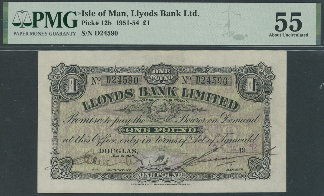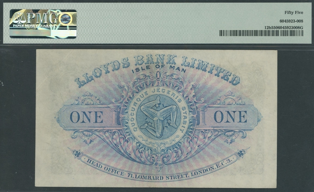 (x) Lloyds Bank Limited, Isle of Man, *TOP POP* £1, Douglas, 24th March 1952, serial number D24590, (Pick 12b, IOMPM M338) in PMG holder 64 Choice Uncirculated, the Sole graded note for the type on PMG census