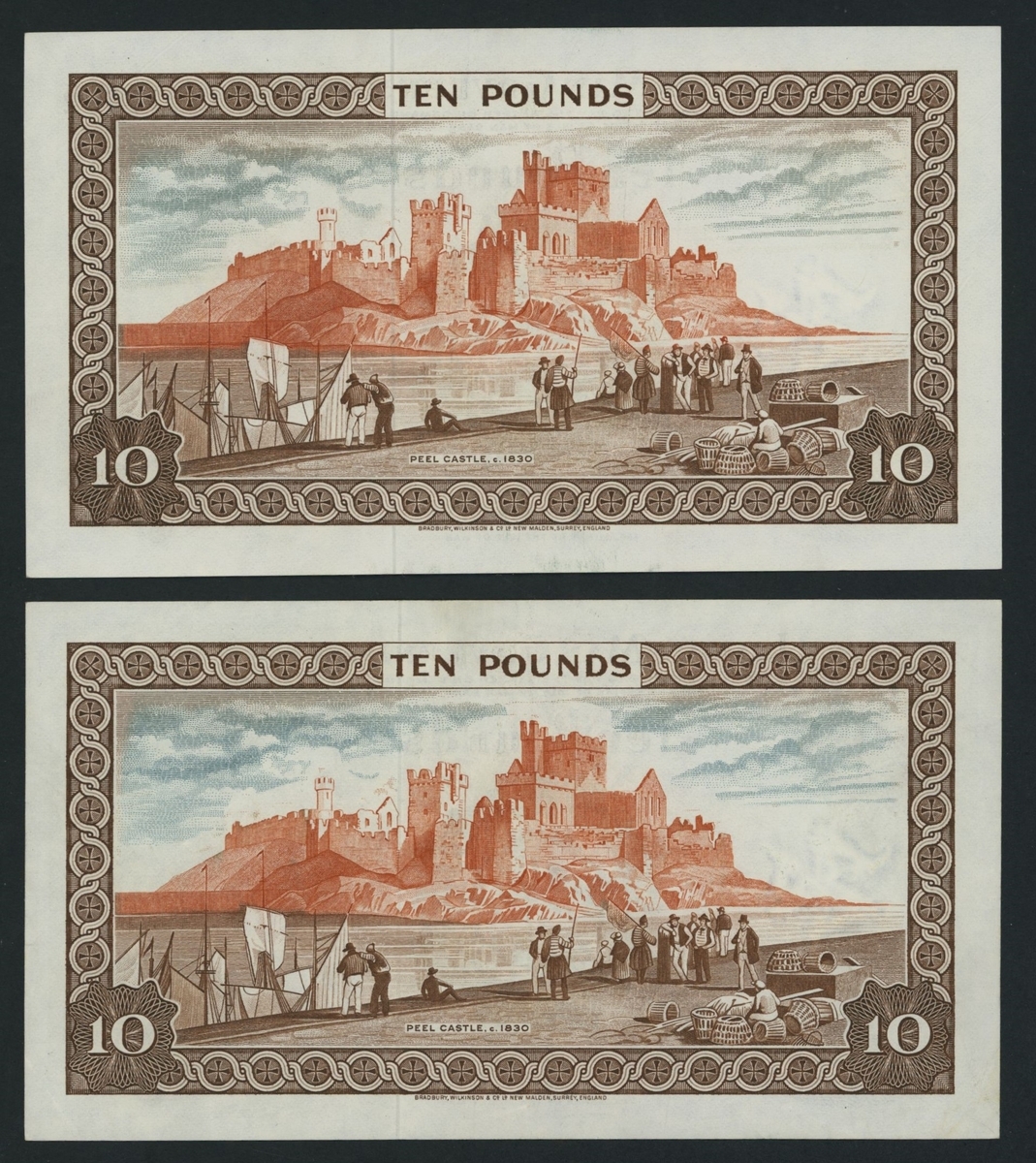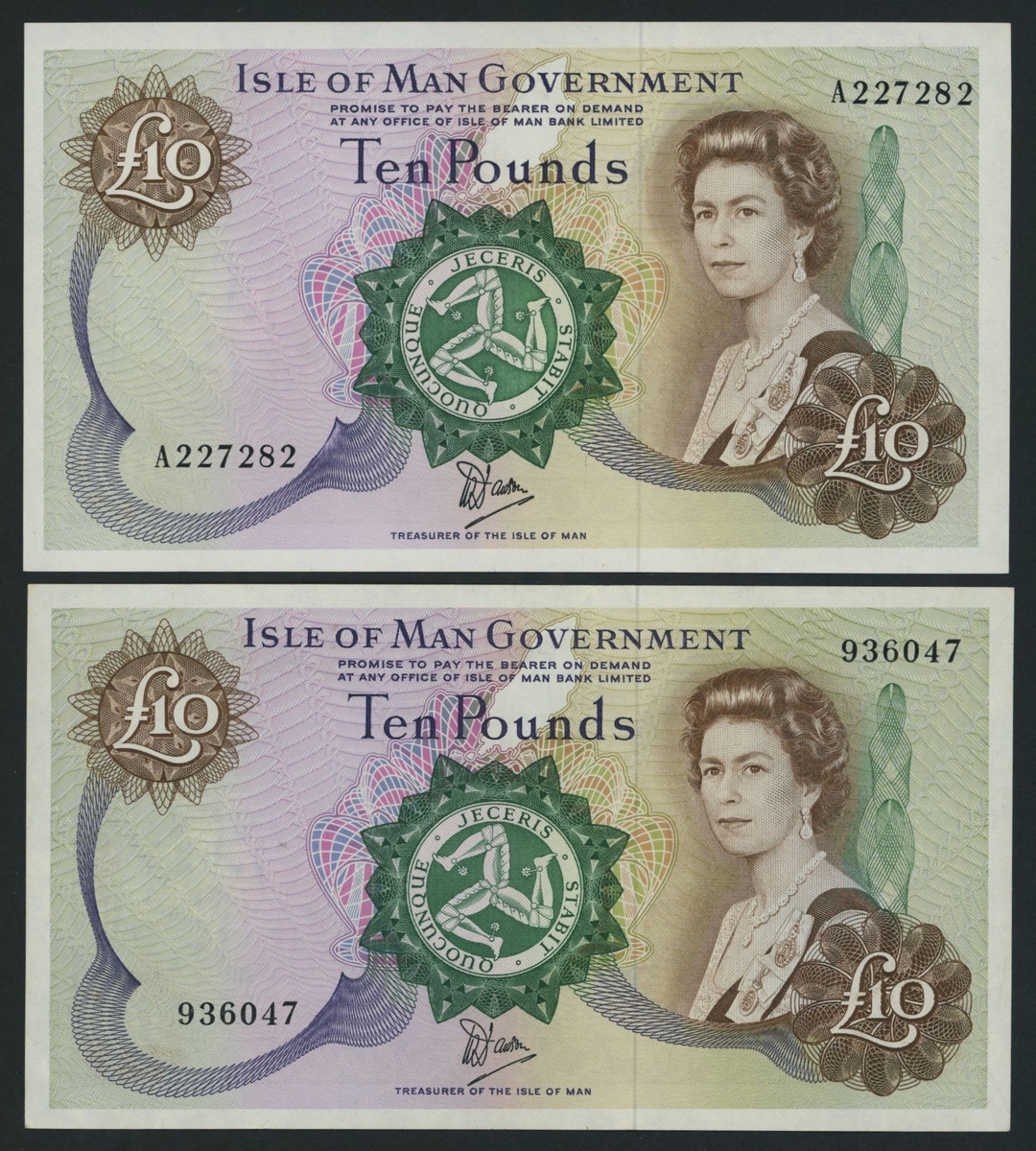 Isle of Man Government, [2 notes] £10, ND (1979-1991), serial numbers 936047 and A227282, (IOMPM M525), solid good extremely fine (2 notes)