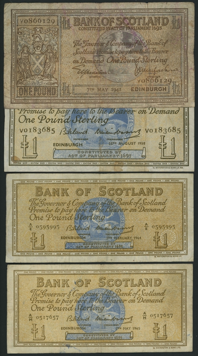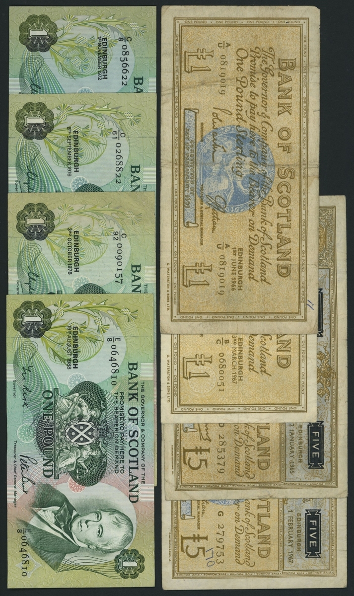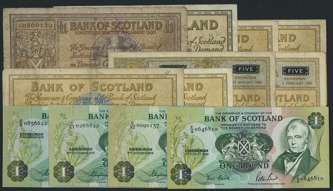 Bank of Scotland, [12 notes] £1, £5, 1941-88, (PMS BA 95b, 99c, 100c, 100d, 100e, 100g, 106c, 106e, 113b, 113c, 113g), fine to about very fine (12 notes)
