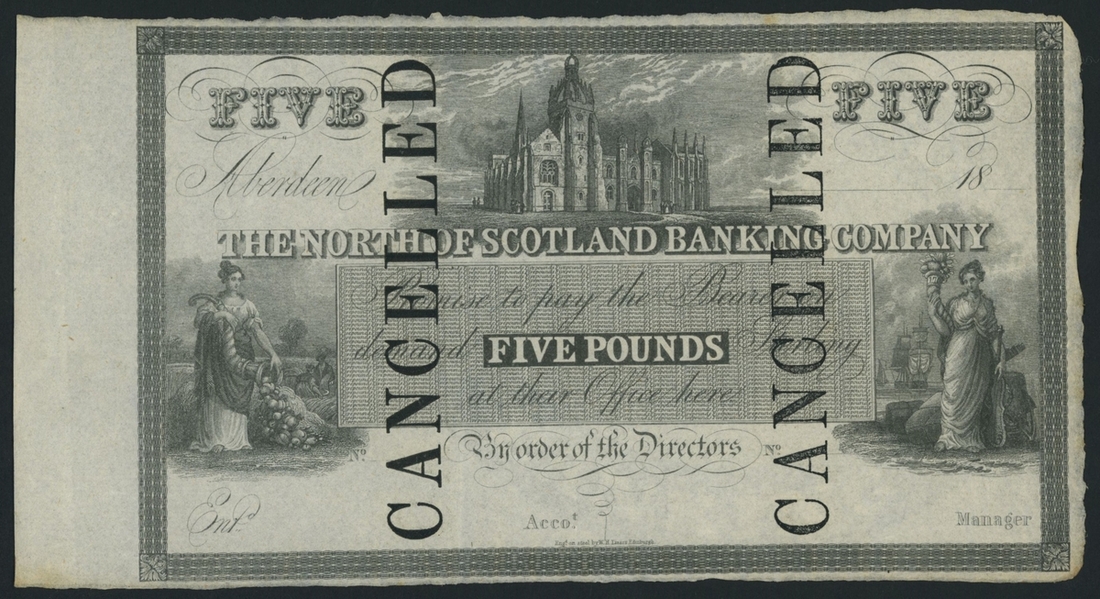 (x) The North of Scotland Banking Company, proof £5, Aberdeen, ND (c. 1836), stamped cancelled,