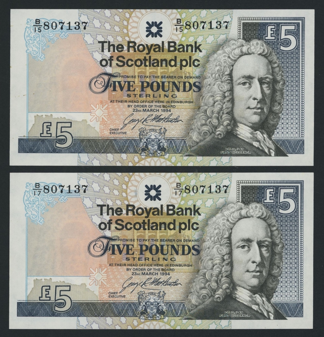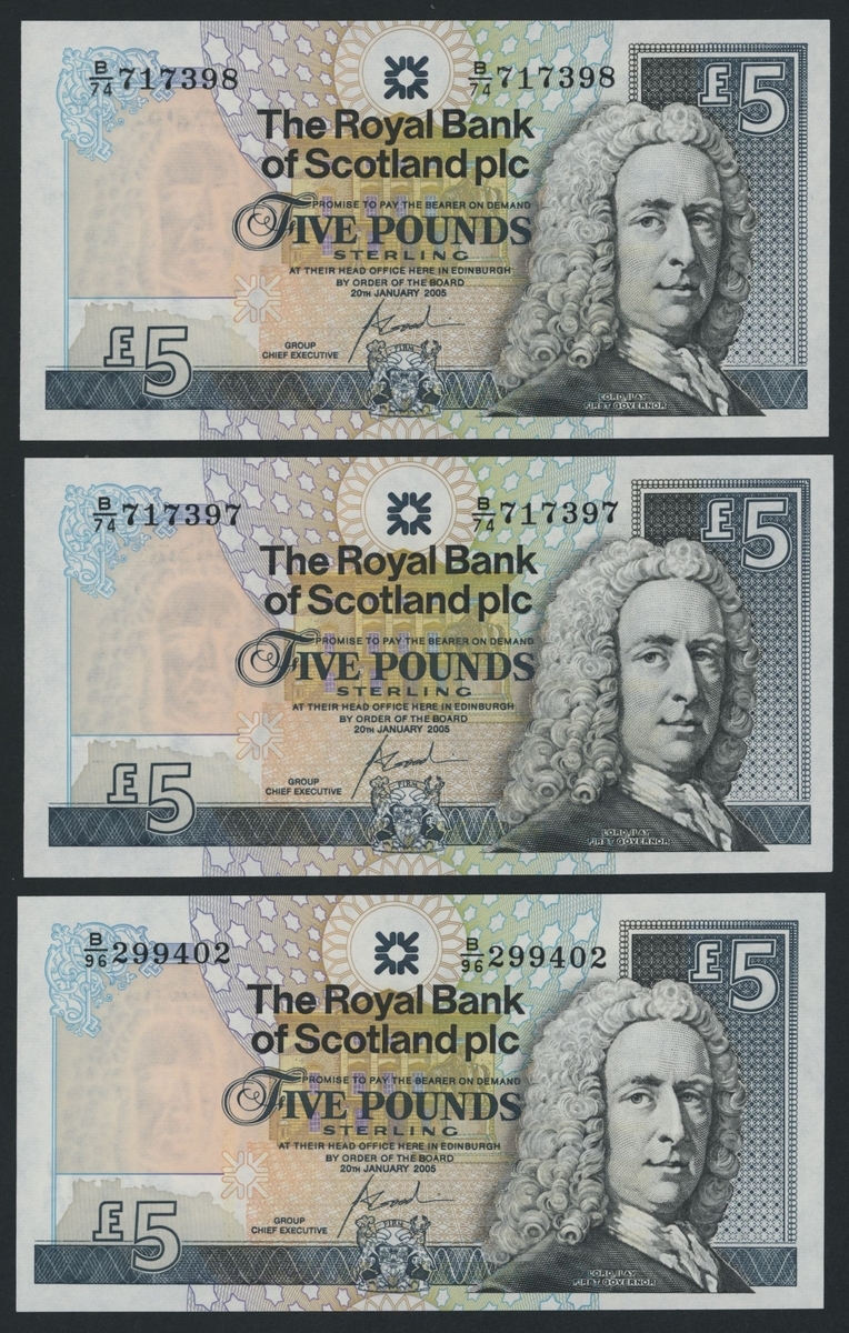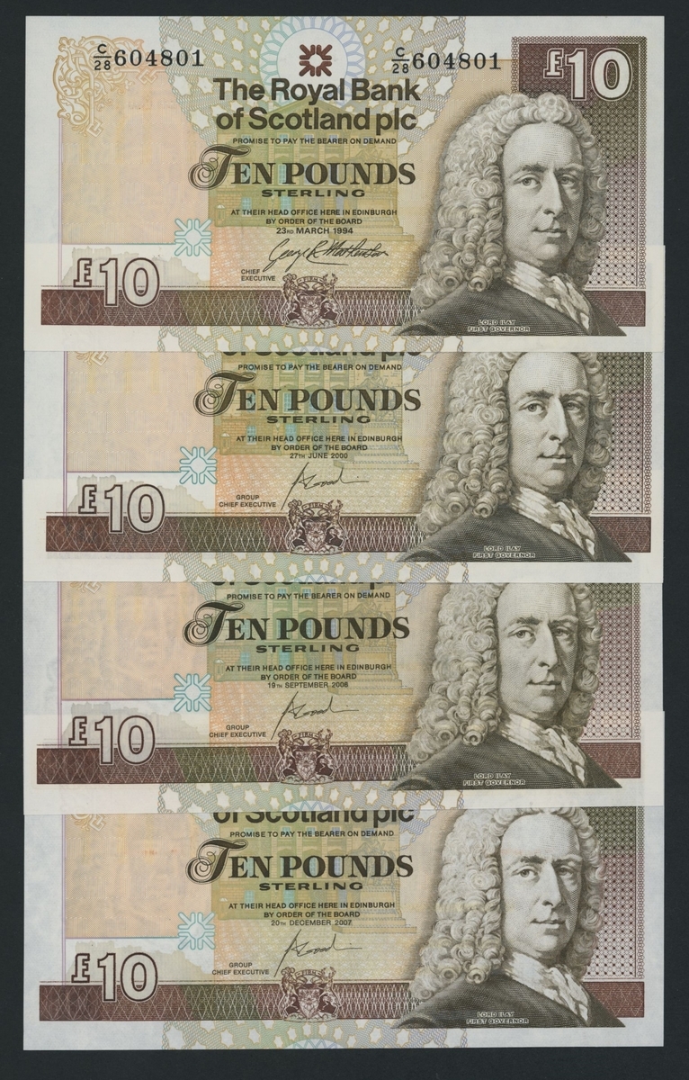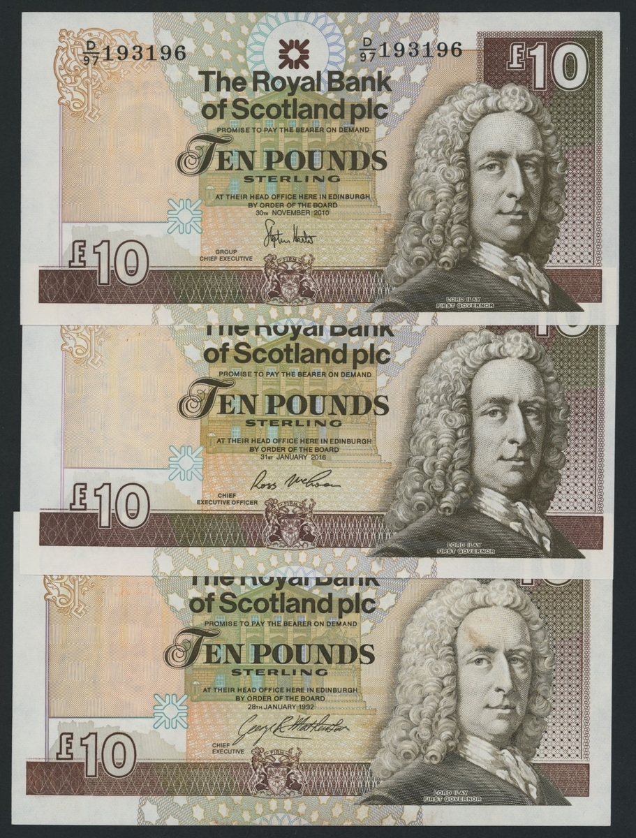 (x) Royal Bank of Scotland, [30 notes] £5, £10, £20, Edinburgh, 1987-2016, including a De La Rue specimen with NO VALUE overprint and 2 reverse progressive proofs (PMS RB 97b proof),