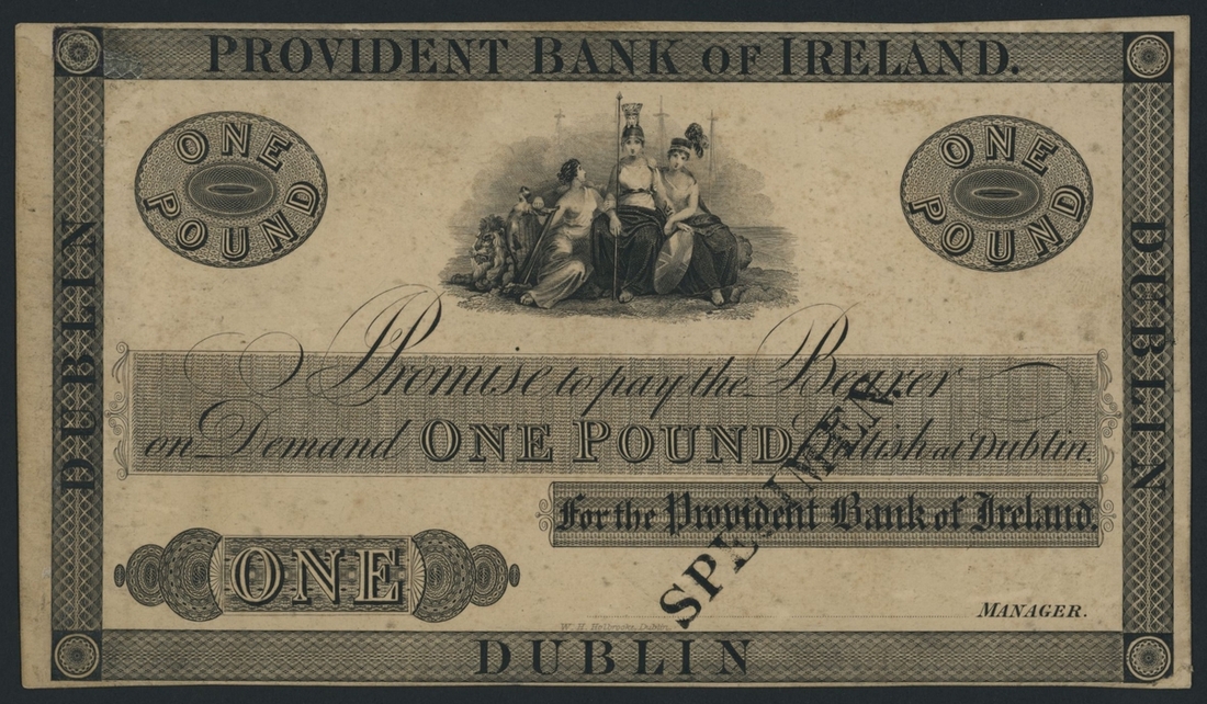 Provident Bank of Ireland, specimen £1, Dublin, ND (), (PMI extremely fine, previously mounted
