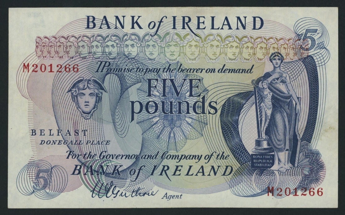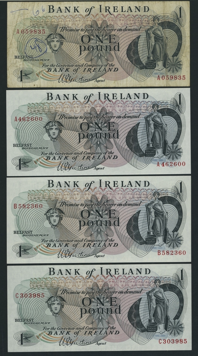 Bank of Ireland, [5 notes] £1, £5, Belfast, ND (1967),