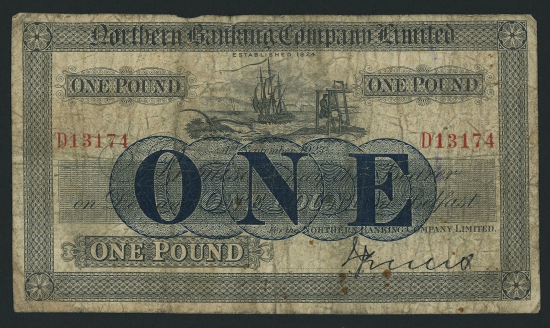 Northern Banking Company, £1, 1st September 1923, serial number D13174, (PMI NR 54), about fine, some stains