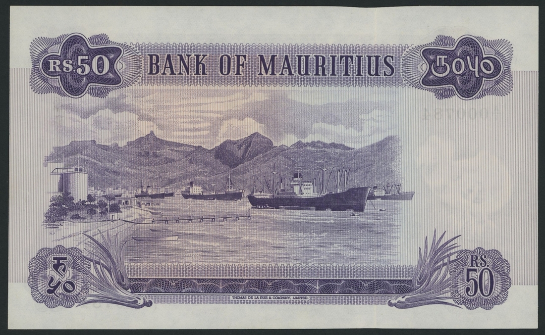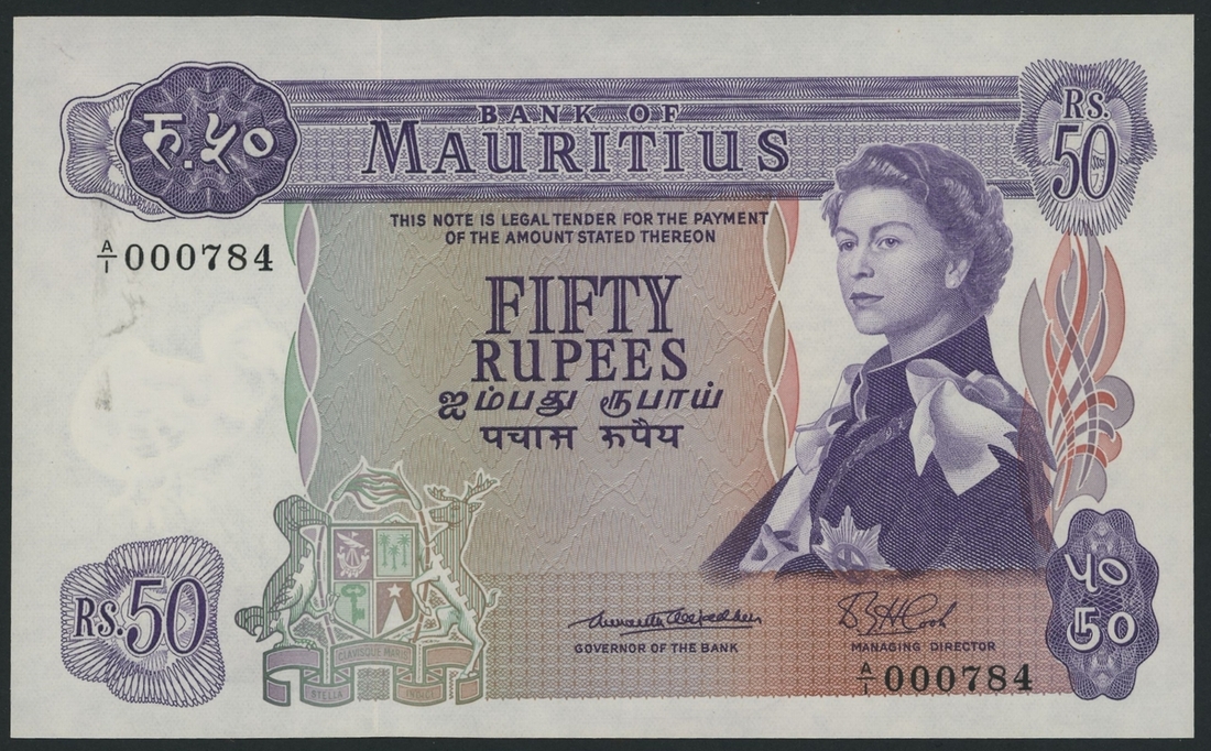 (x) Bank of Mauritius, 50 Rupees, ND (1967), serial number A/1 000784, (Pick 33a), uncirculated