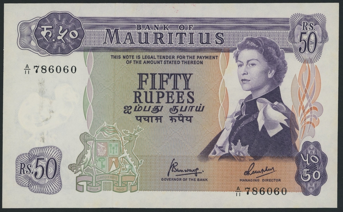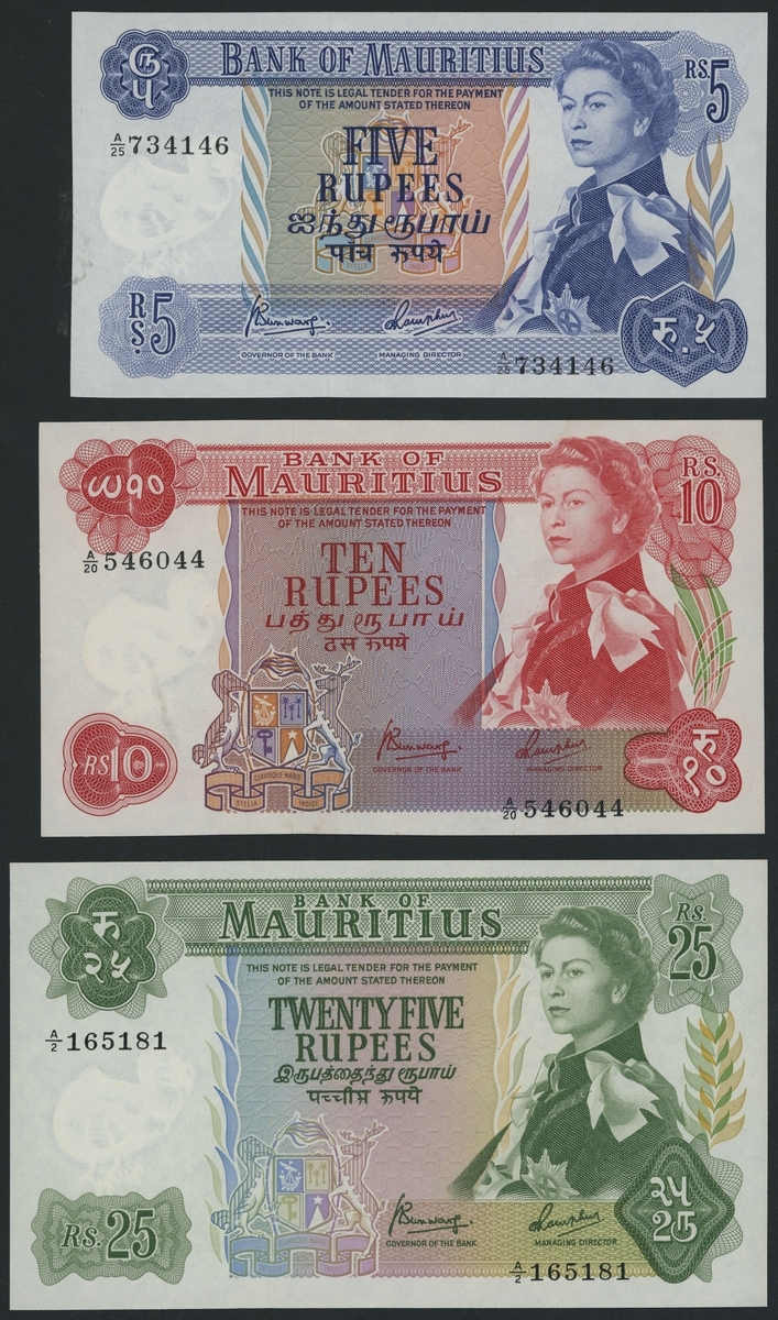 (x) Bank of Mauritius, [4 notes] complete set of matching signature 5, 10, 25 & 50 Rupees, ND (1967),