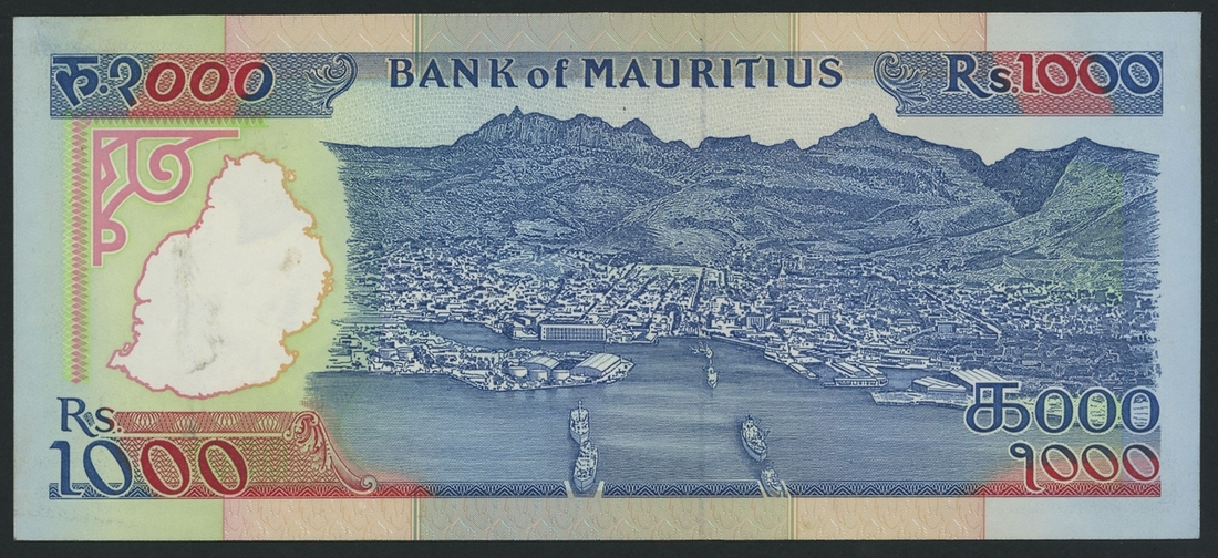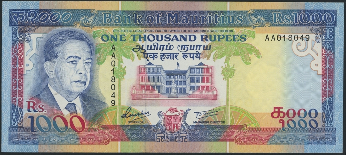 (x) Bank of Mauritius, 1000 Rupees, ND (1990), serial number AA 018049, (Pick 41), uncirculated