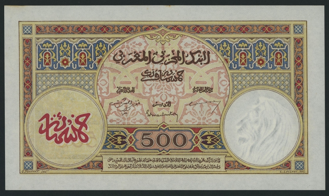 (x) Banque d'Etat du Maroc, 500 Francs, 10th November 1948, serial number R.462 933, (Pick 15b, BNB 215), good very fine, rust
