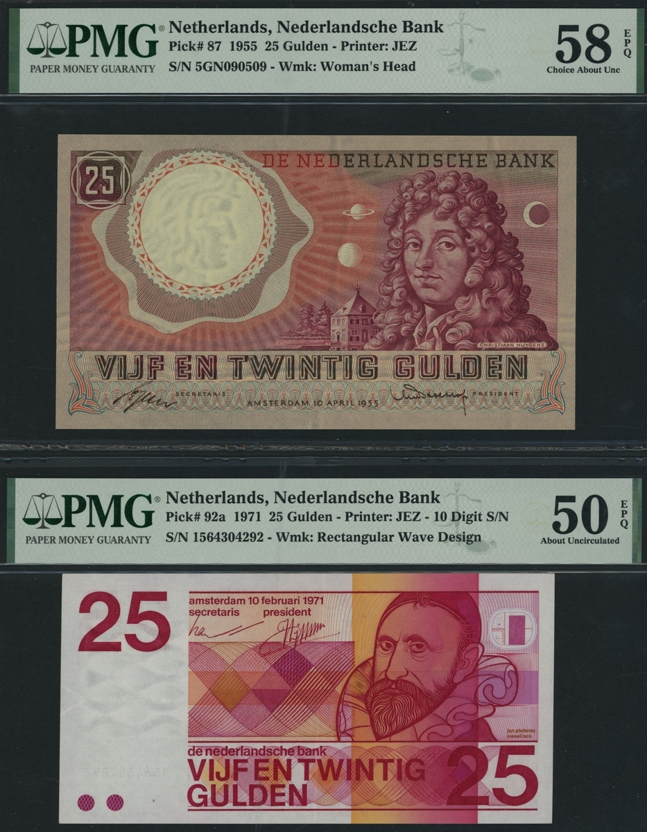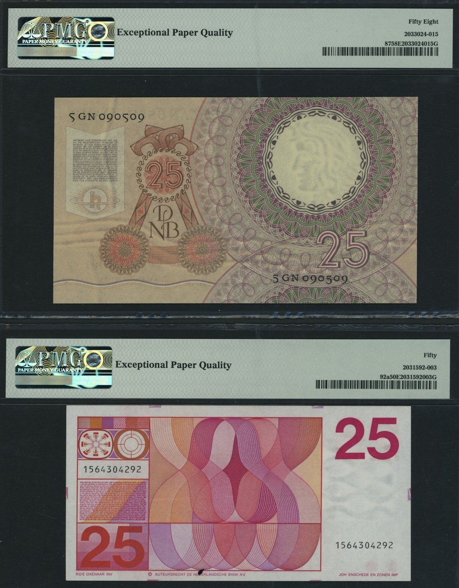 (x) Nederlandsche Bank, Netherlands, [2 notes], 25 Gulden, 1955-1971,