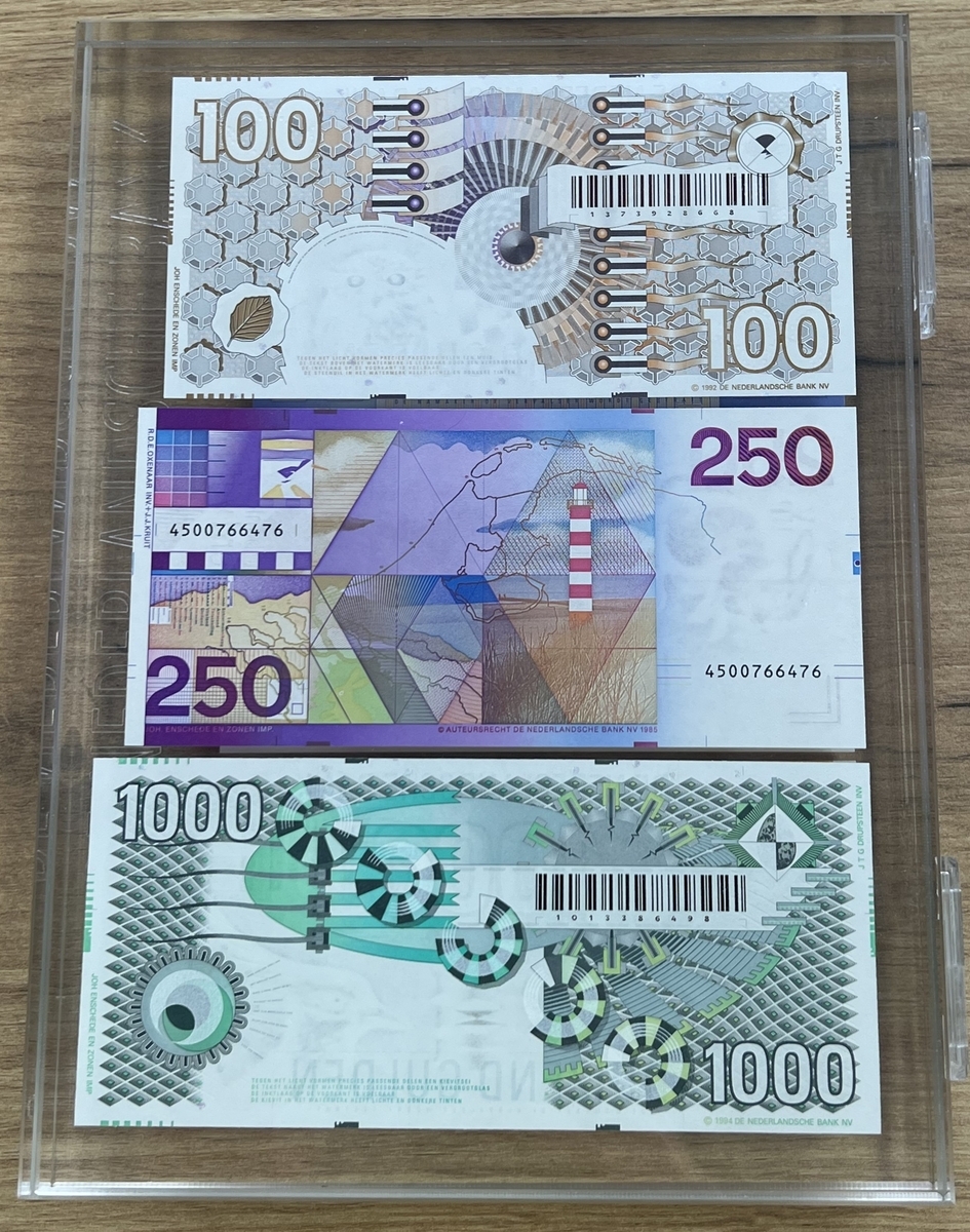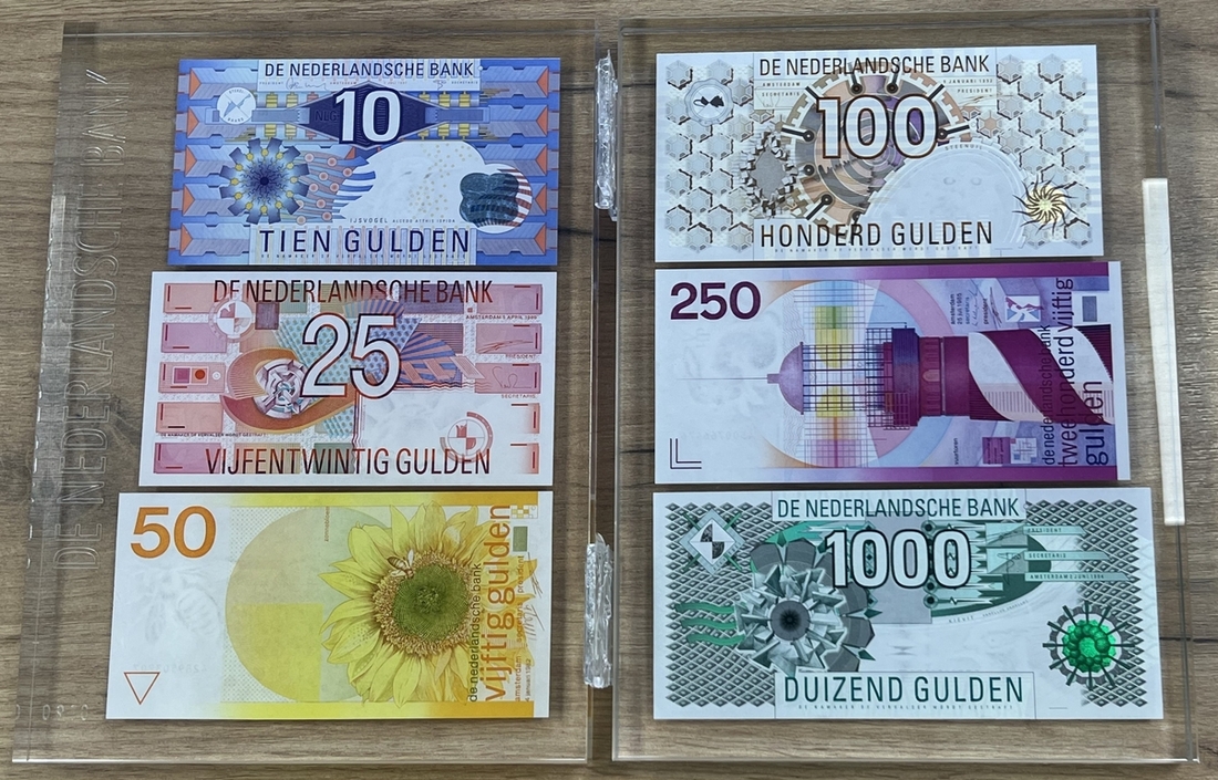 (x) De Nederlandsche Bank Acrylic Set, [6 notes] 10, 25, 50, 100, 250, 1000 Gulden, Amsterdam, 1982-1997,