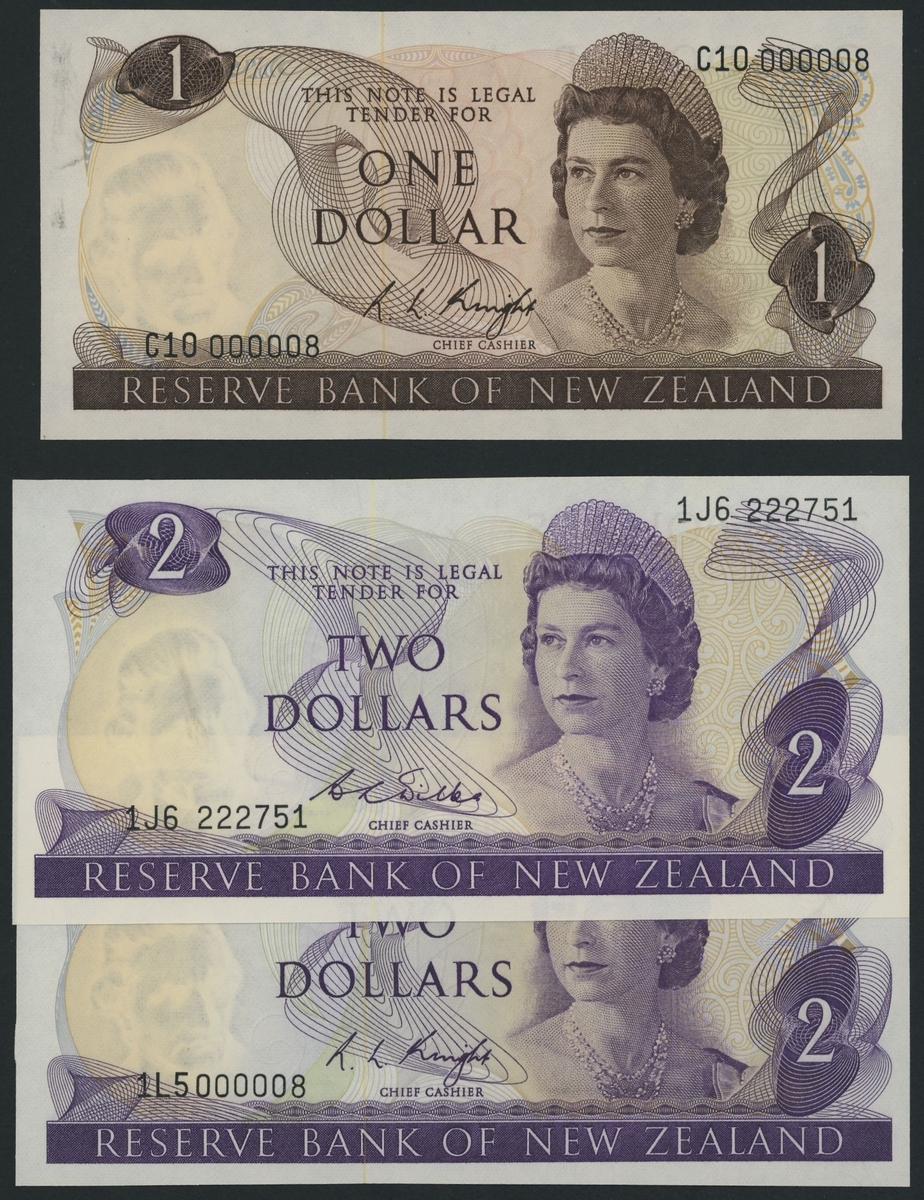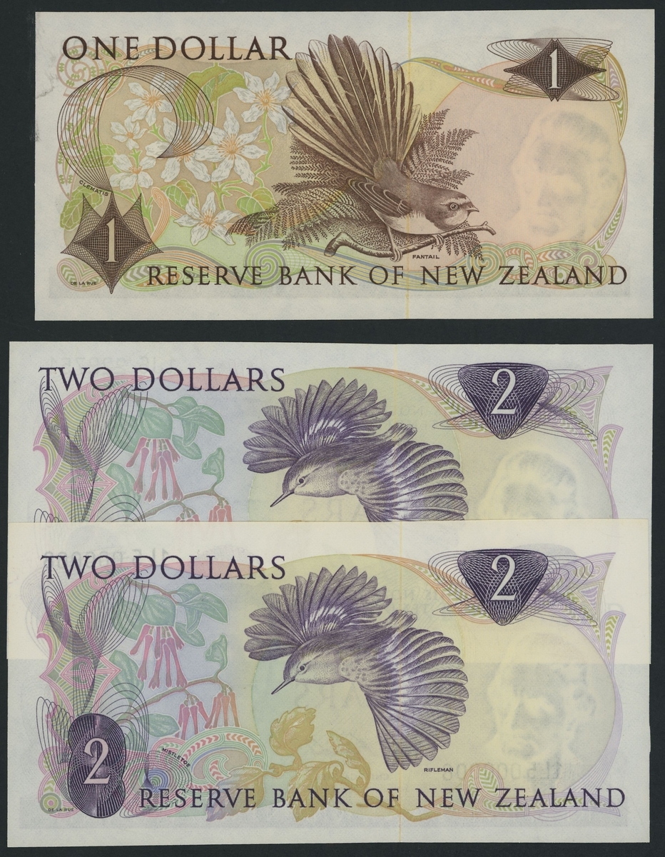 (x) Reserve Bank of New Zealand, [3 notes] 1 & 2 Dollars, ND (1967-81)