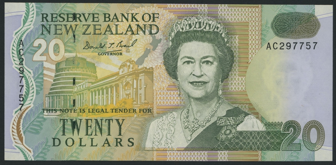 (x) Reserve Bank of New Zealand, 20 Dollars, 1996 Commemorative Issue, serial number AC297757, (Pick 184), uncirculated