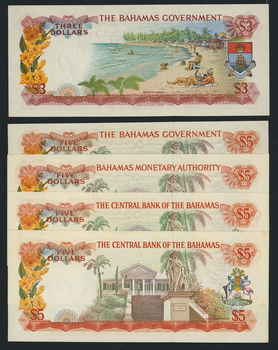 (x) The Bahamas, [5 notes] $3, $5, 1965-1974, The Bahamas Government: