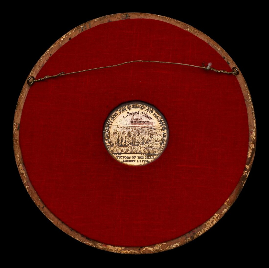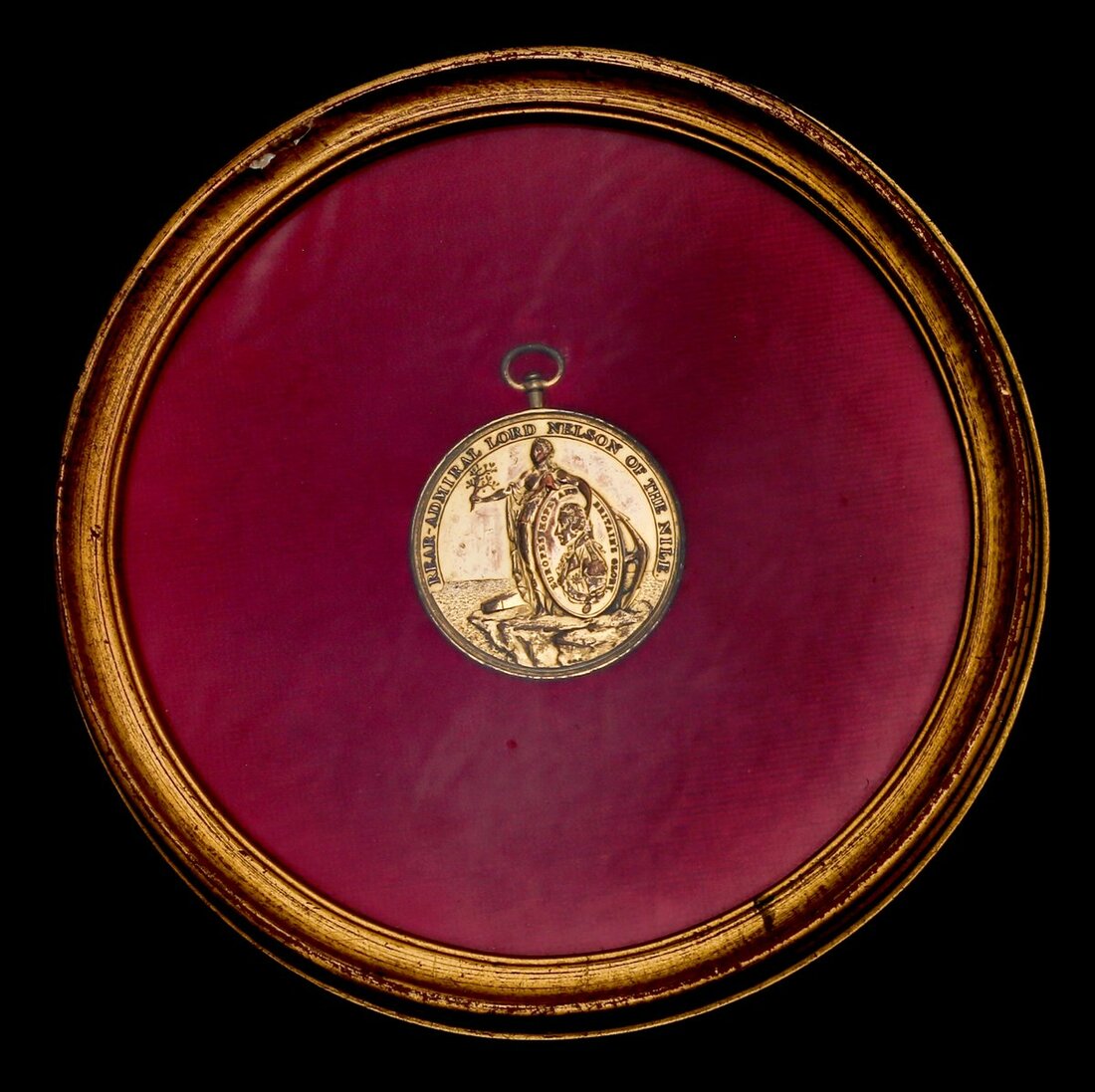 Alexander Davison's Medal for the Nile 1798, gilt-bronze, (Joseph Dunt H.M.S. Defence), fitted with a contemporary swivel suspension loop for wear, housed in a frame for display, some light wear to highpoints but with most gilt remaining, generally very fine