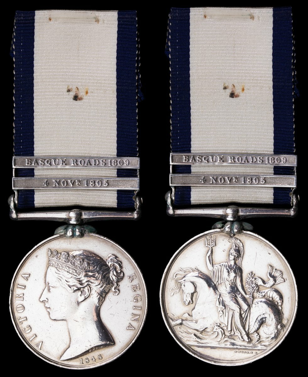 Naval General Service 1793-1840, 2 clasps, 4 Novr 1805, Basque Roads 1809 (John Croxton.), plugged at 6 o'clock, otherwise good very fine